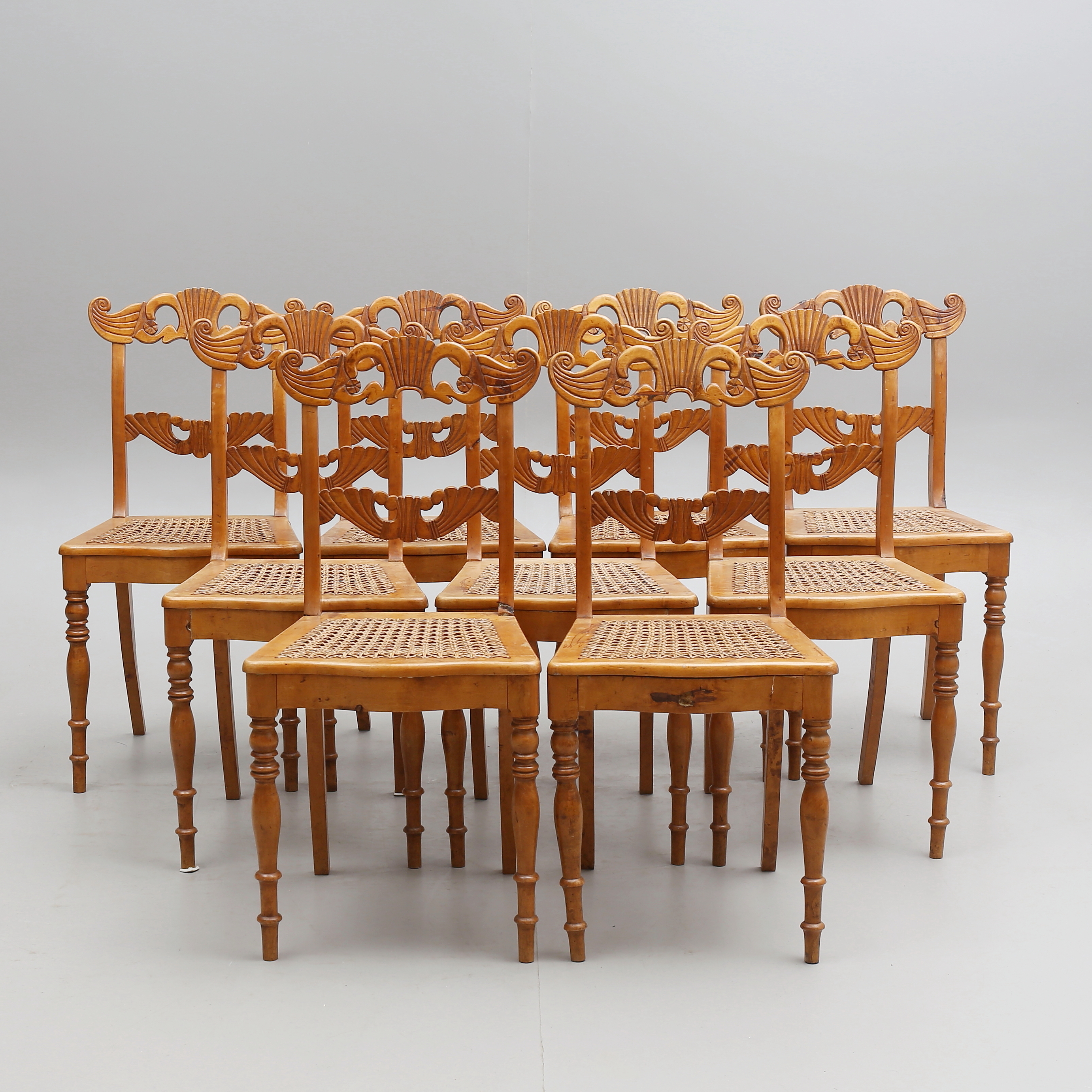 1167408. STOLAR, 9 st, flätad rottingsits.
