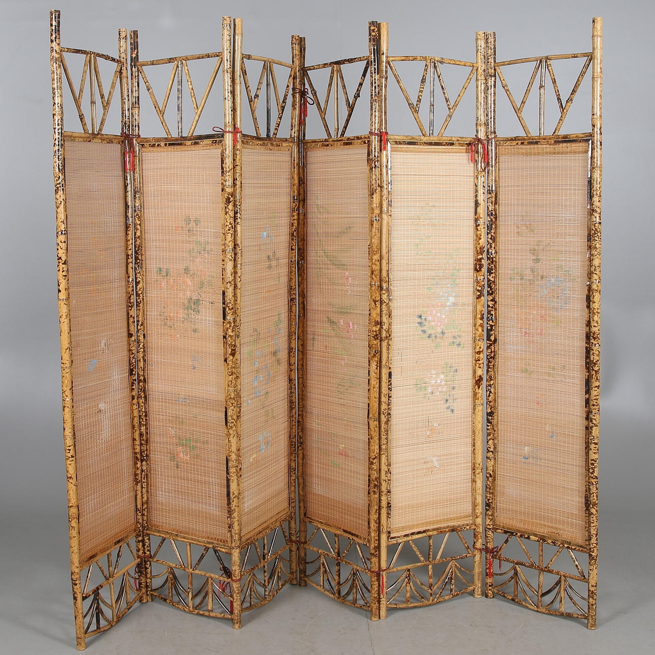 Sex skärmar, handmålad, bredd 228, höjd 183 cm.