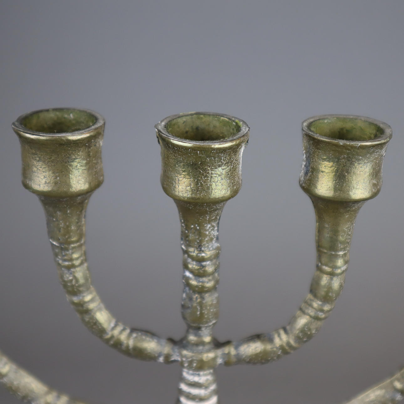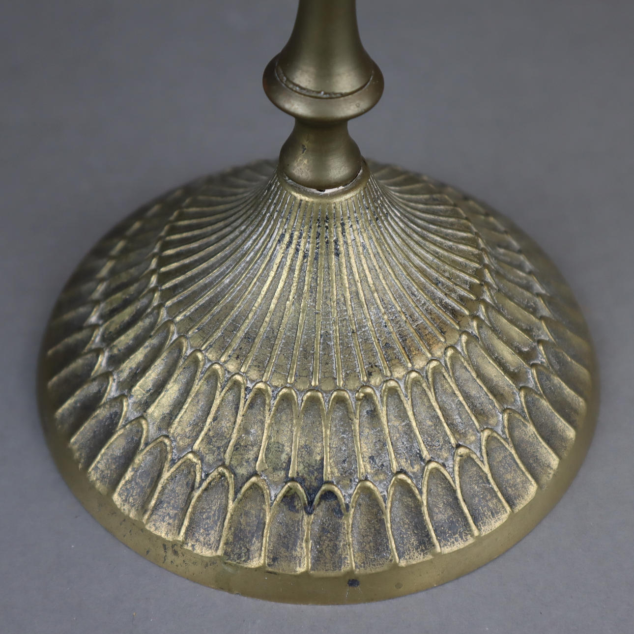 Minora ljuskrona - mässing, 7 lampor, rund välvd bas med prydnads relief dekor, balusteraxel, höjd ca 32,5 cm.
