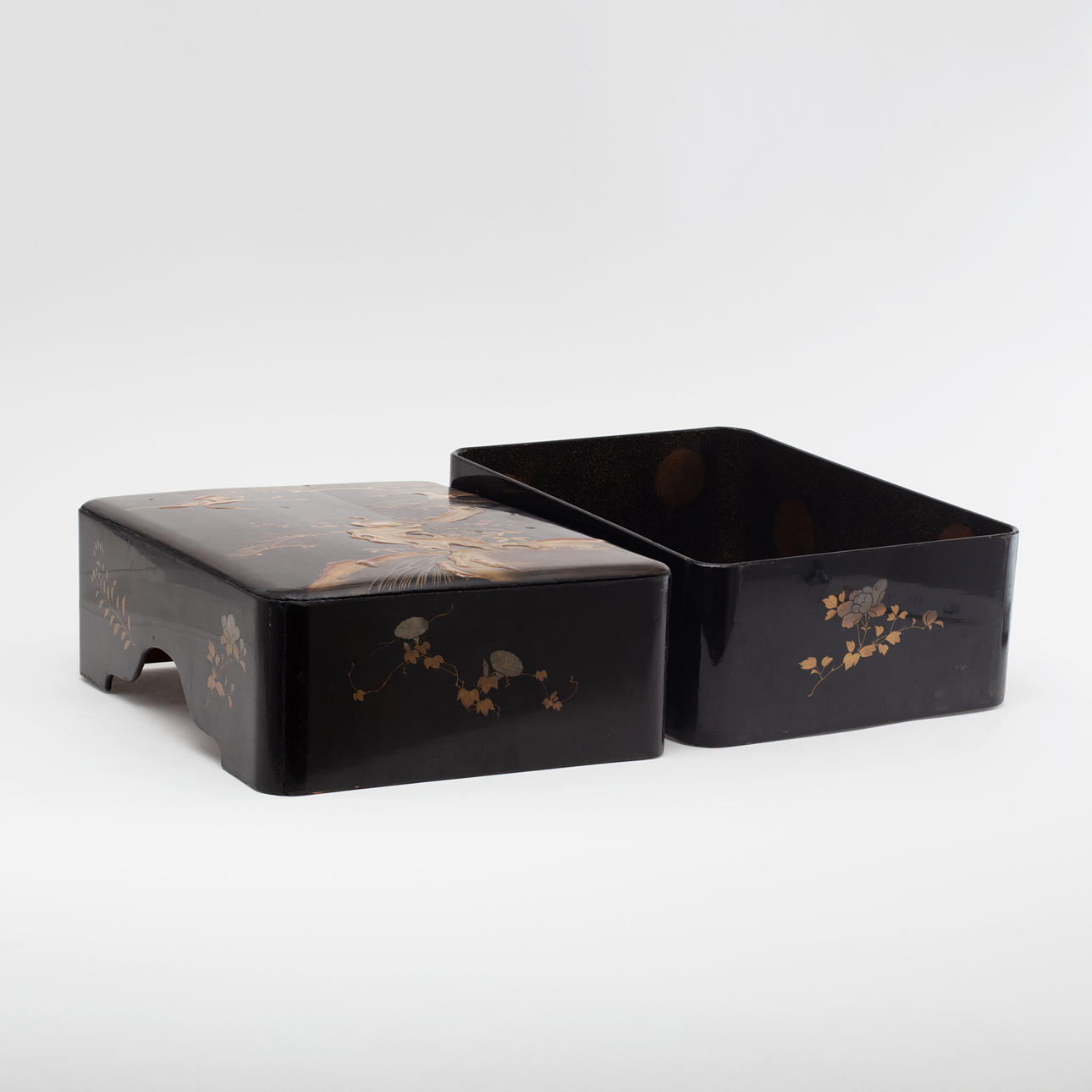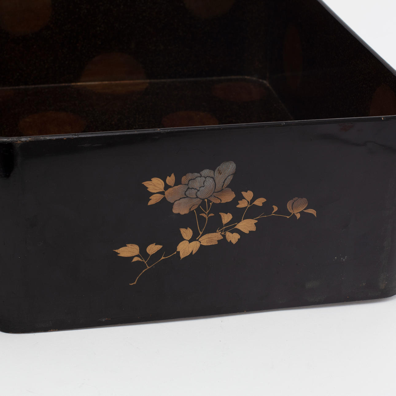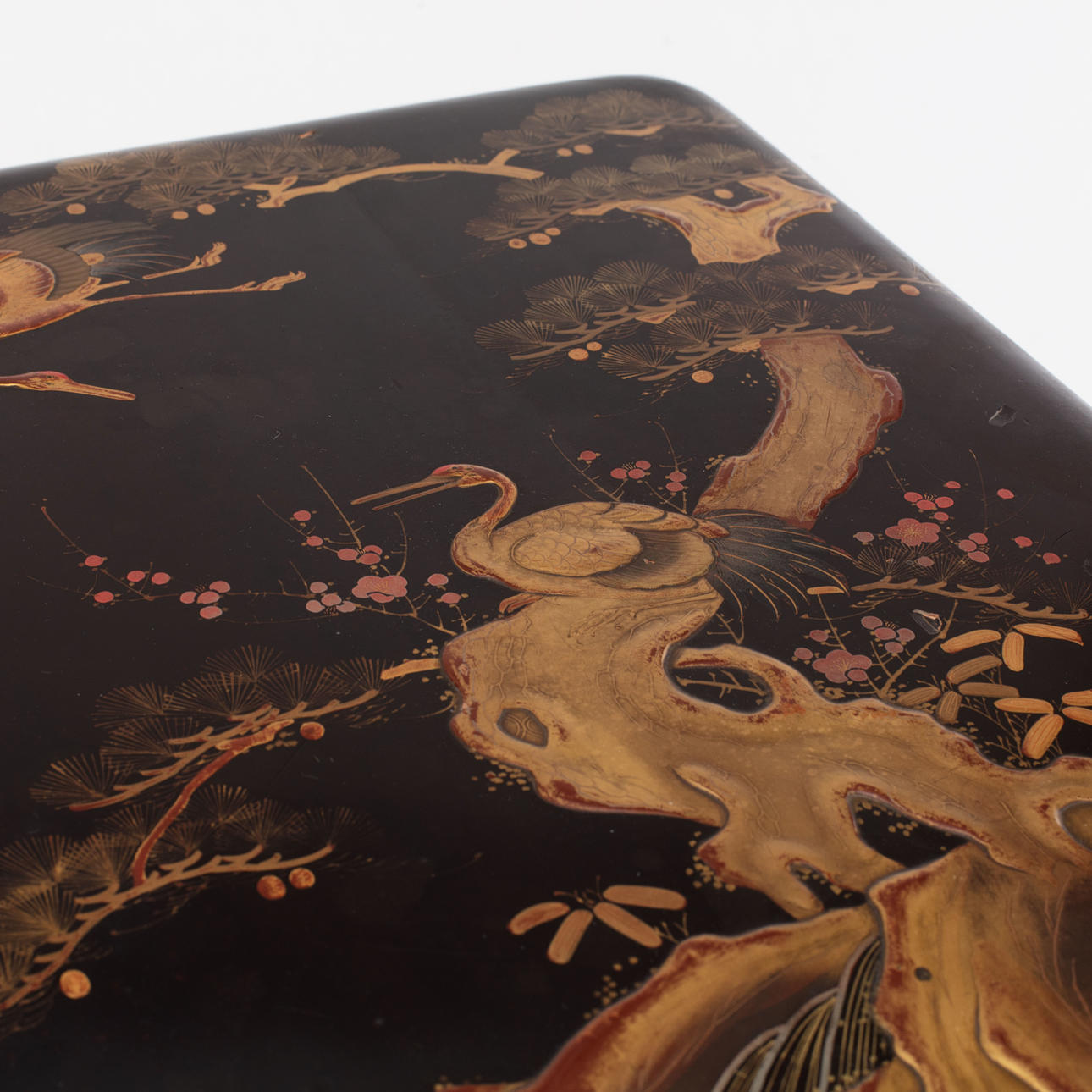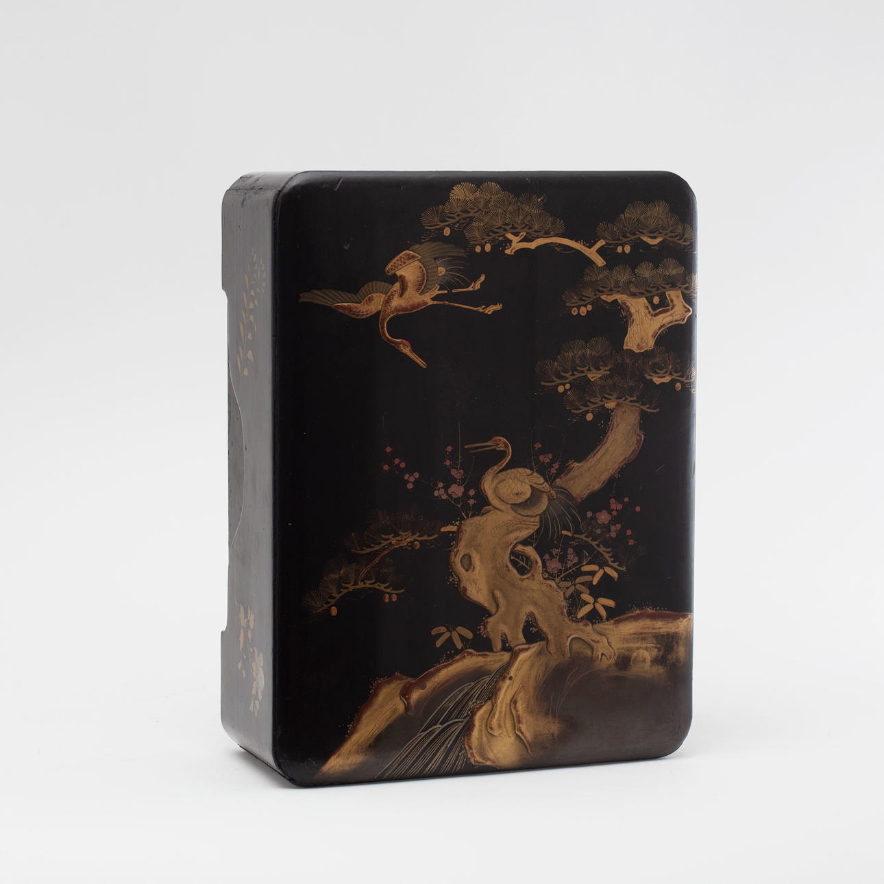 Målad dekor av tranor. 42 x 32 cm, höjd 15 cm.