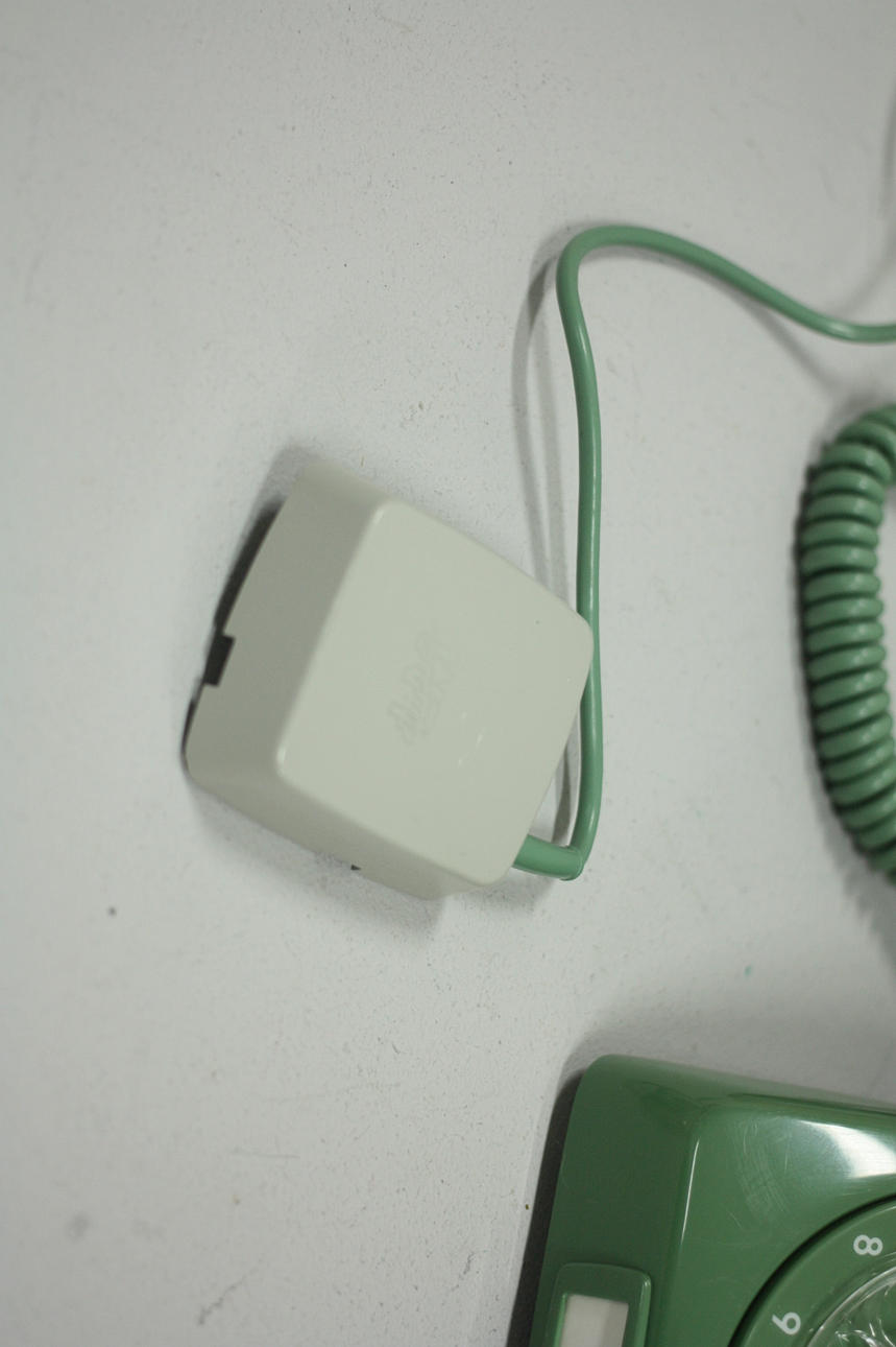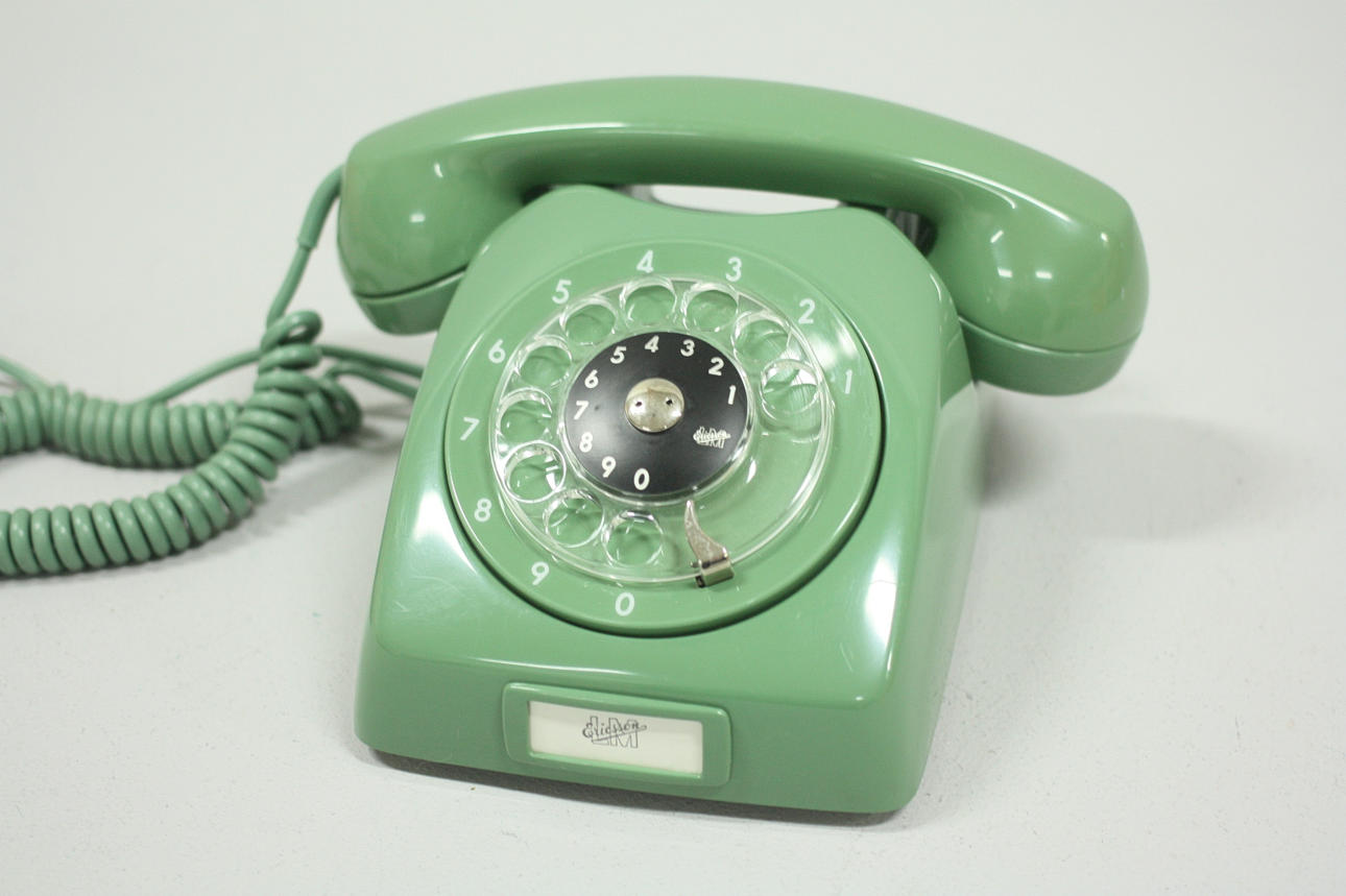 Grön telefon 1970-tal, LM Ericsson, i orginallåda.