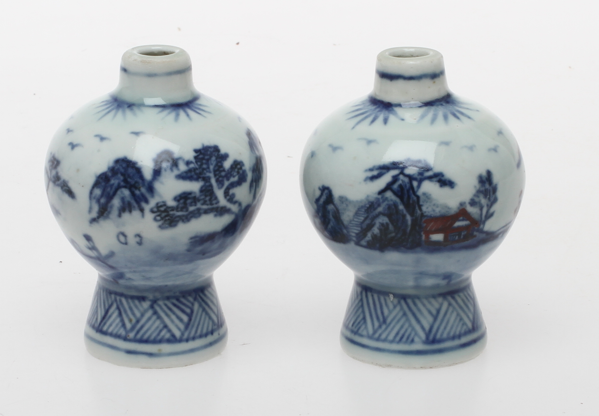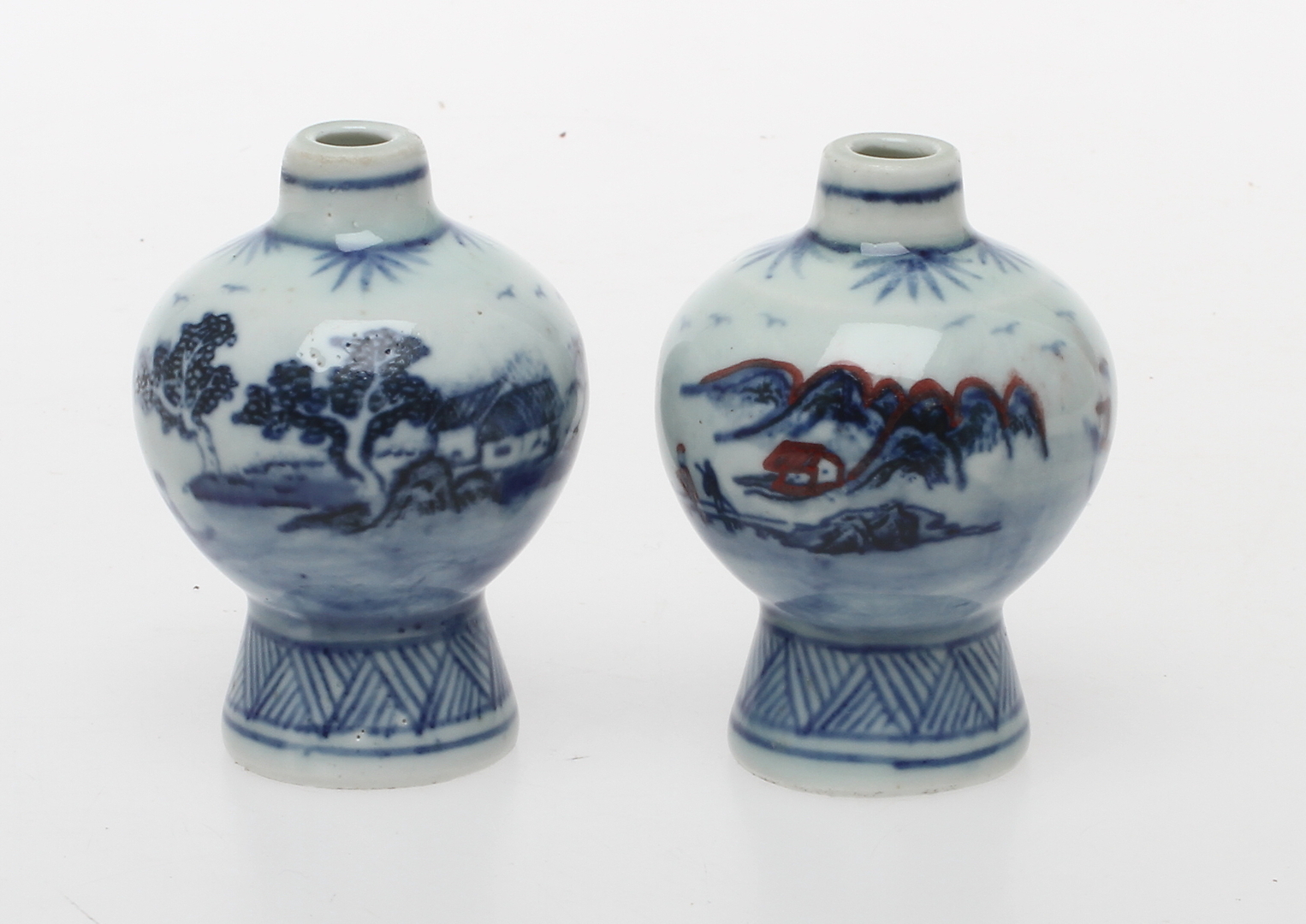 117452. SNUSFLASKOR/MINITAYRVASER, ett par, porslin, Kina.