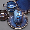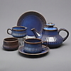 8 tekoppar med 7 fat, diameter 9,5 respektive 16,5 cm