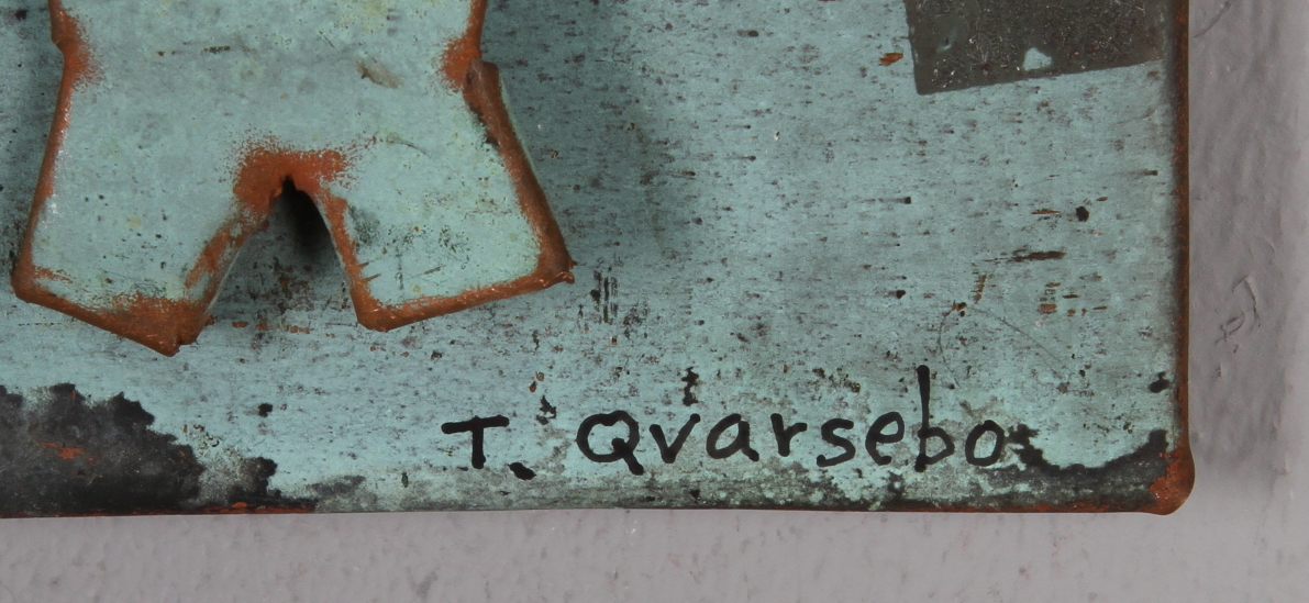 118015. THOMAS QVARSEBO. Väggrelief, koppar, signerad.