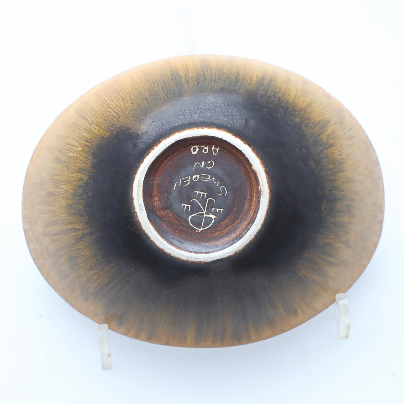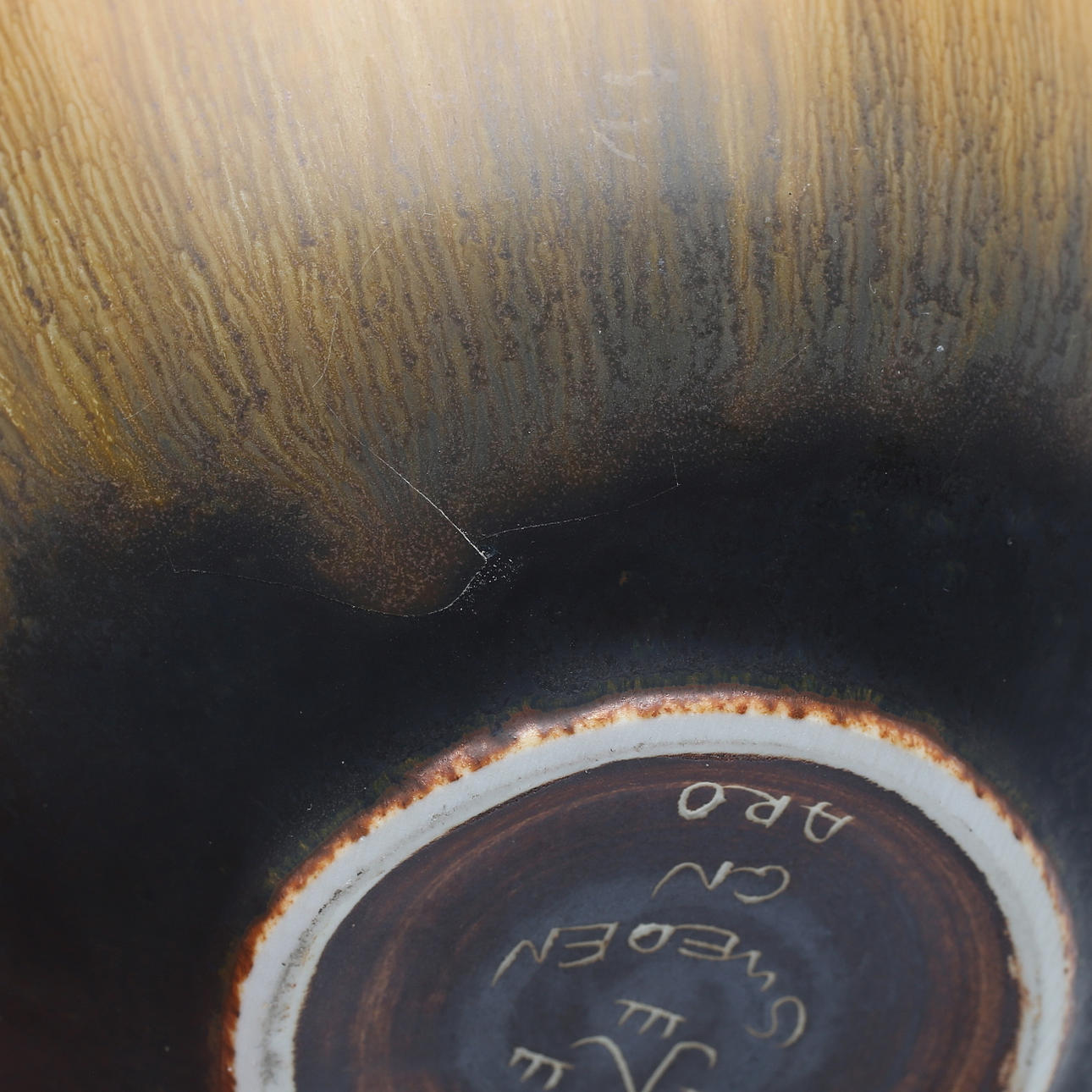 Sprickor i glasyren nere på utsidan mot basen samt inuti botten i mitten.