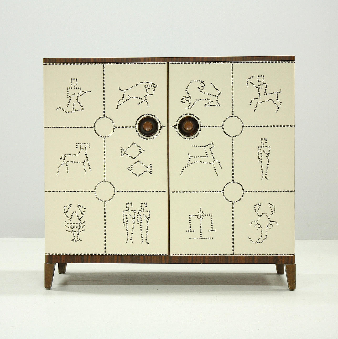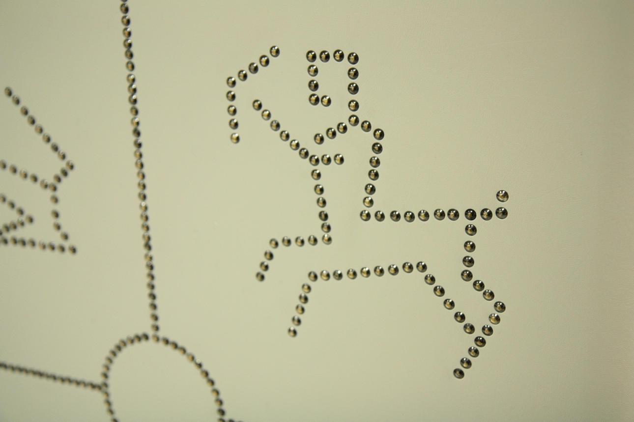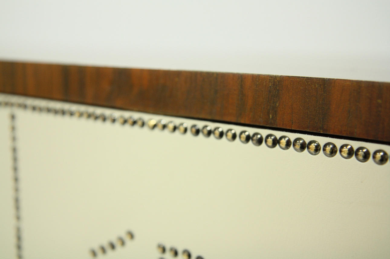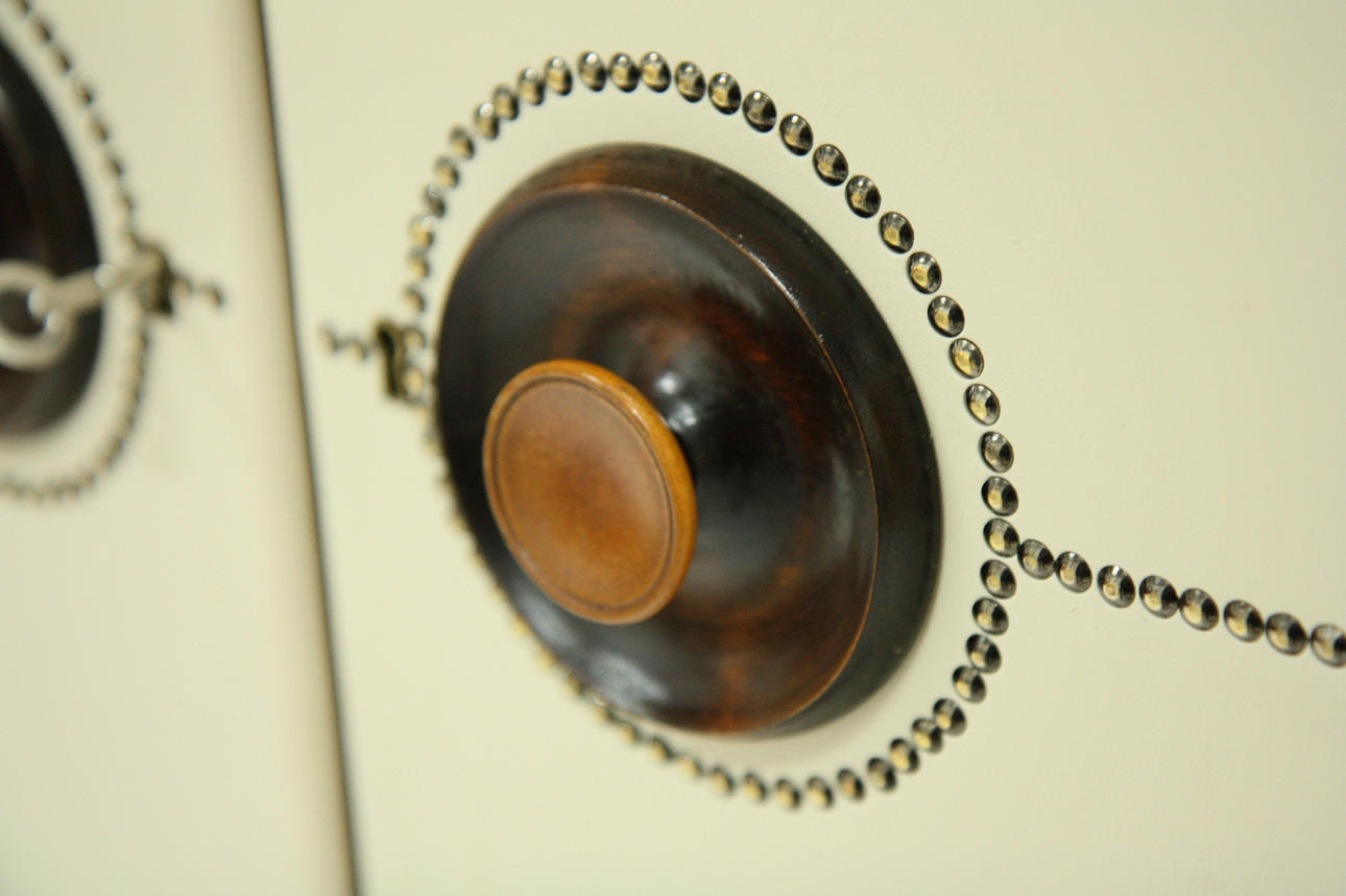 Omklädd med konstläder och pärlspikar på senare tid.