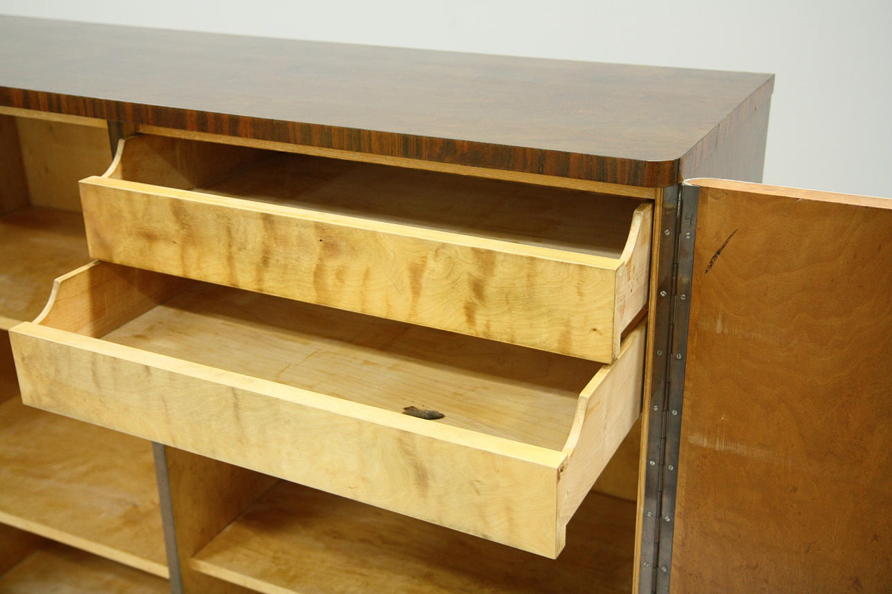 Bakomliggande hyllplan samt 2 st draglådor.