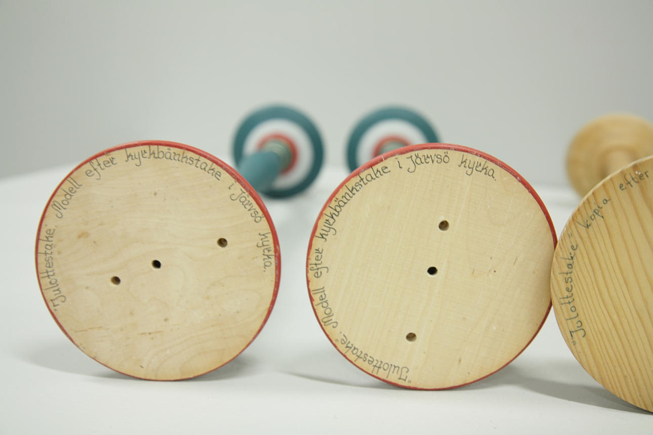 Modell efter kyrkbänkstakar i Järvsö kyrka. Höjd 57,5 cm.