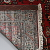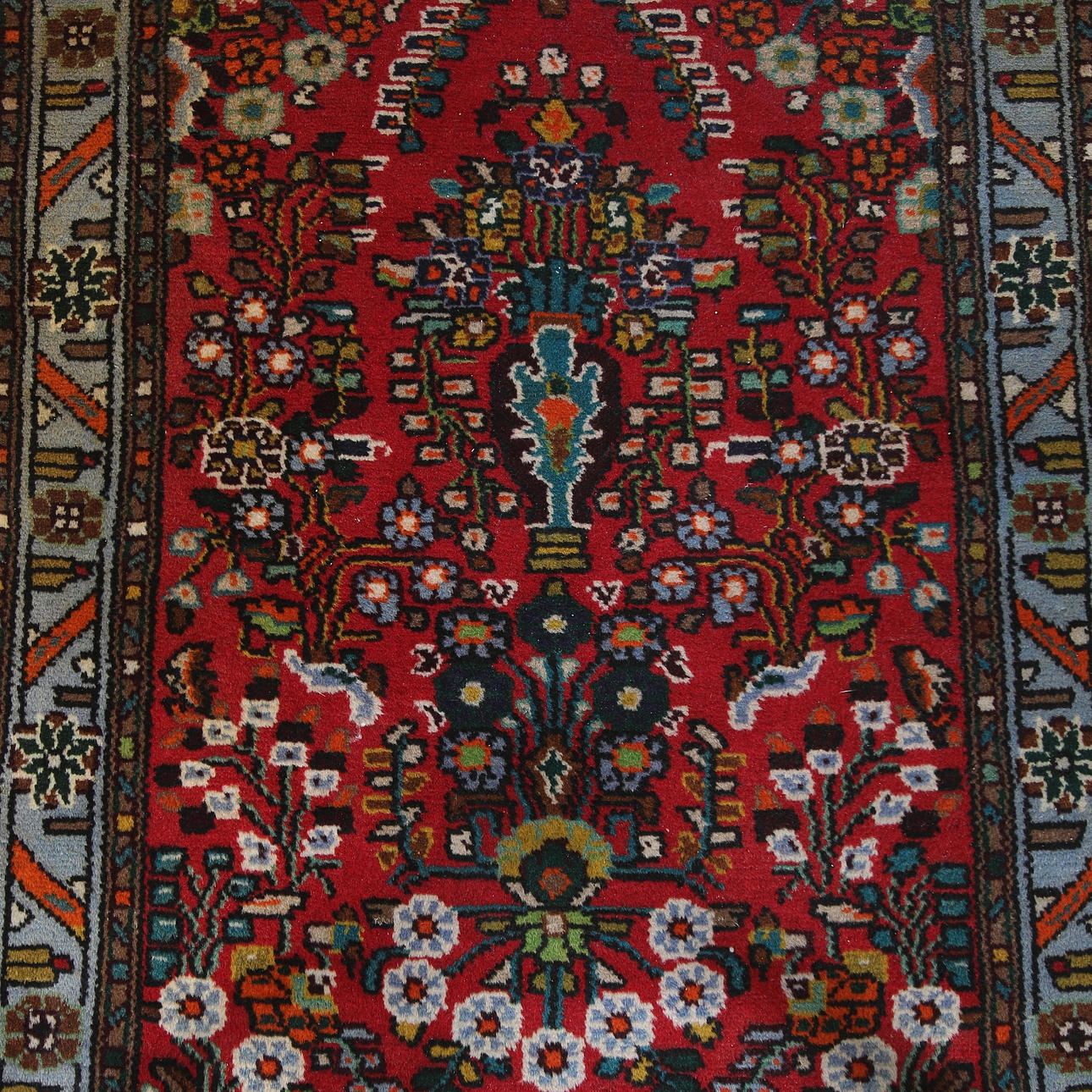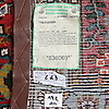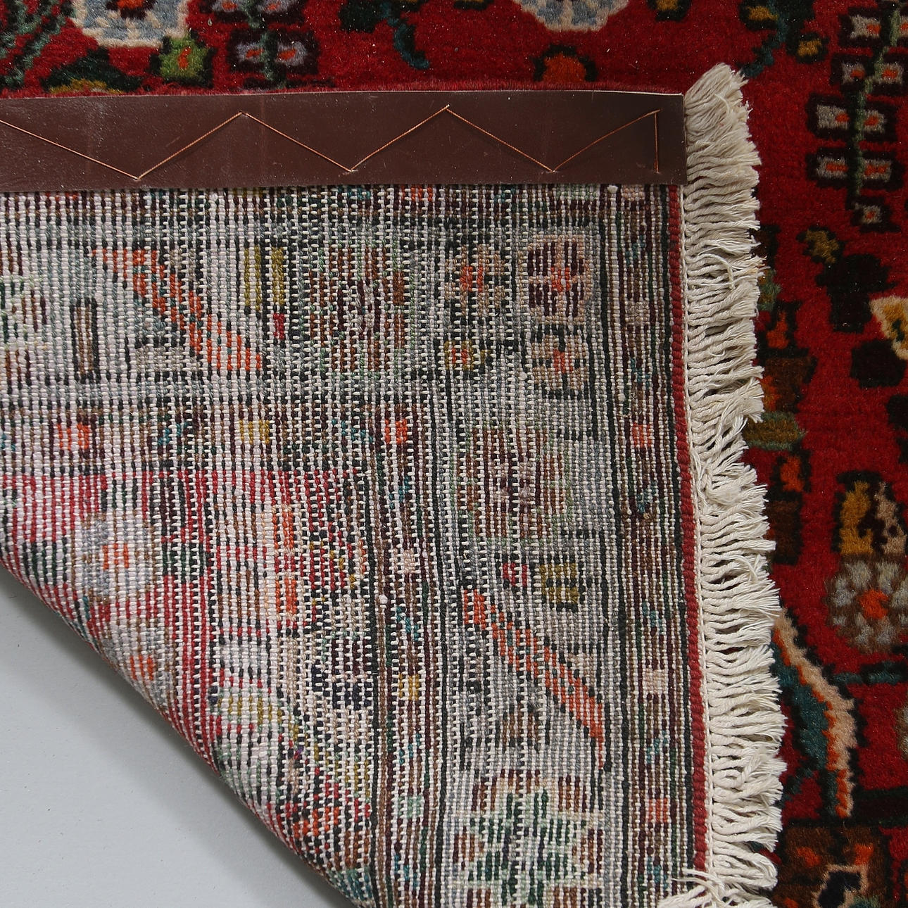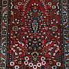 Röd botten med schematiserande mönster.