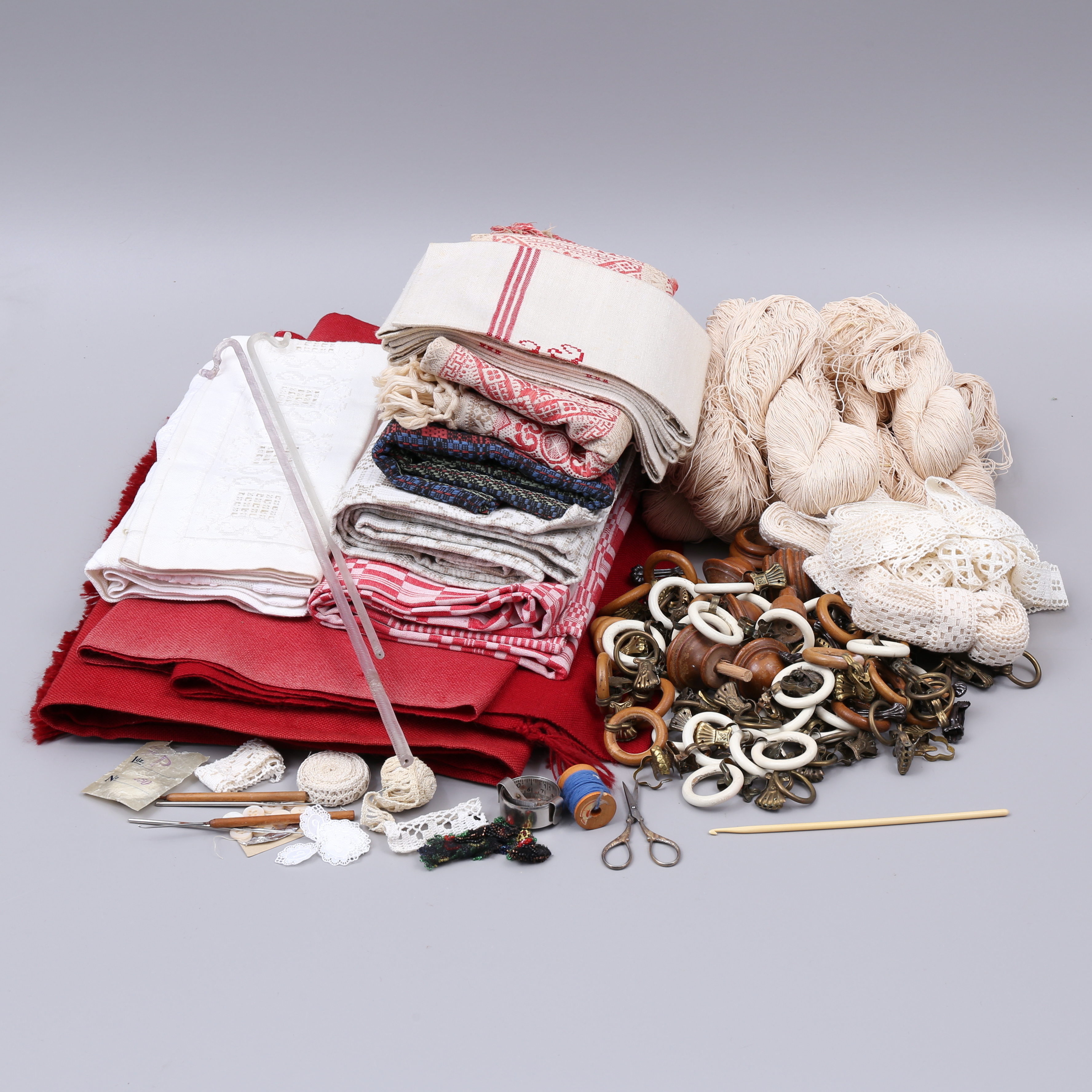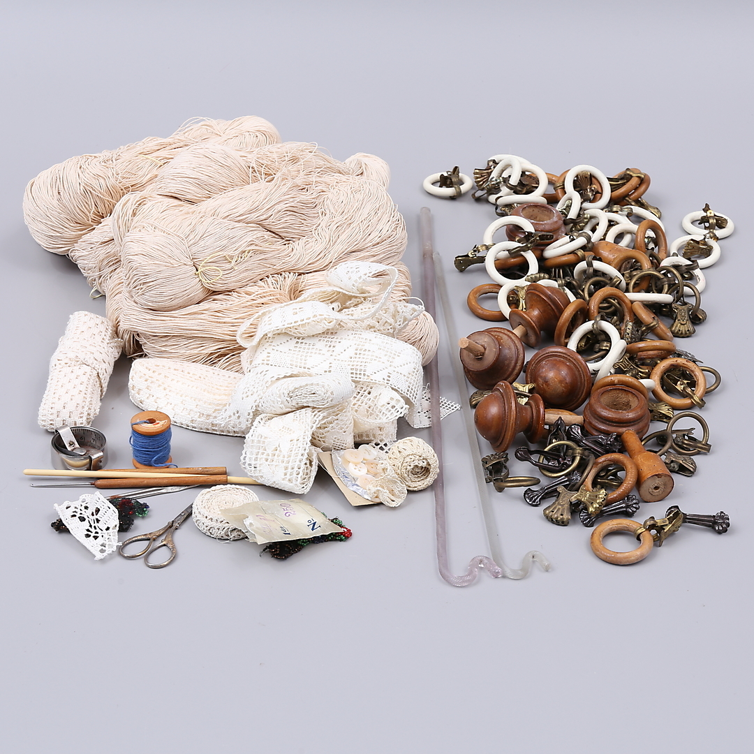 1188971. DUKAR, GARDINER, GARDINKROKAR, SPETS, GARN.