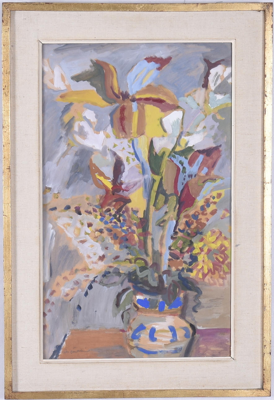 Blommor i vas. Signerad. 55x33 cm.