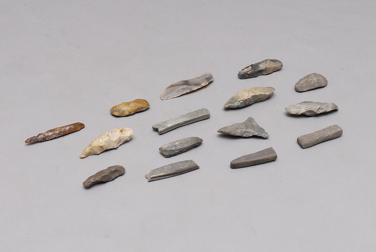 STENÅLDERSVERKTYG, 15 st, bl.a. flinta.