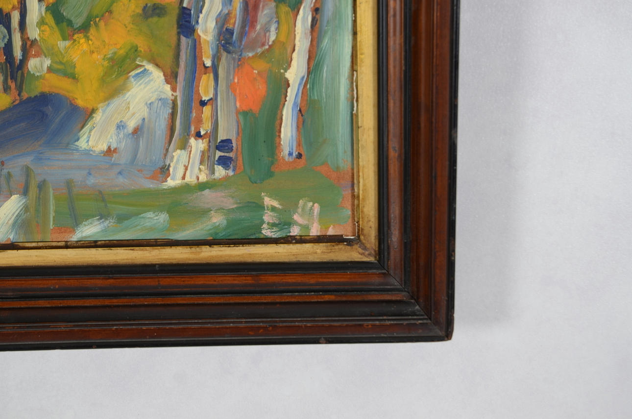 Landskap med bebyggelse signerad EH, ¨56x54 cm.