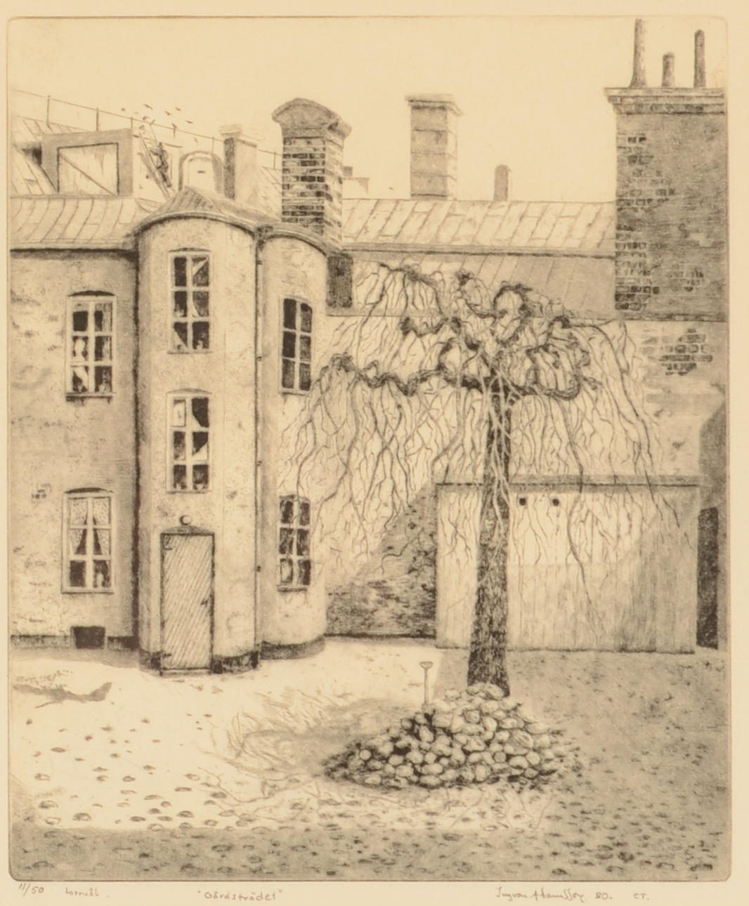 Gårdsträdet, signerad och numrerad 11/50, daterad 1980, 30x25 cm.