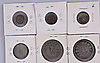 2 kroner 1890 och 1902, 50 øre 1877, 25 øre 1904, 10 øre 1899 och 1901.