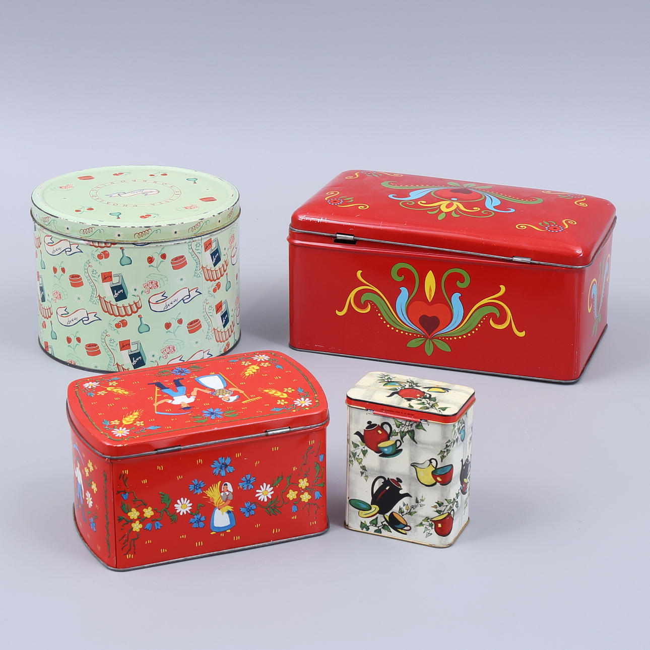 1206300. PLÅTBURKAR, 4 st, Svea Choklad m m.