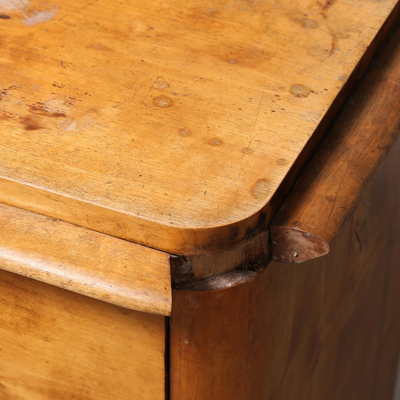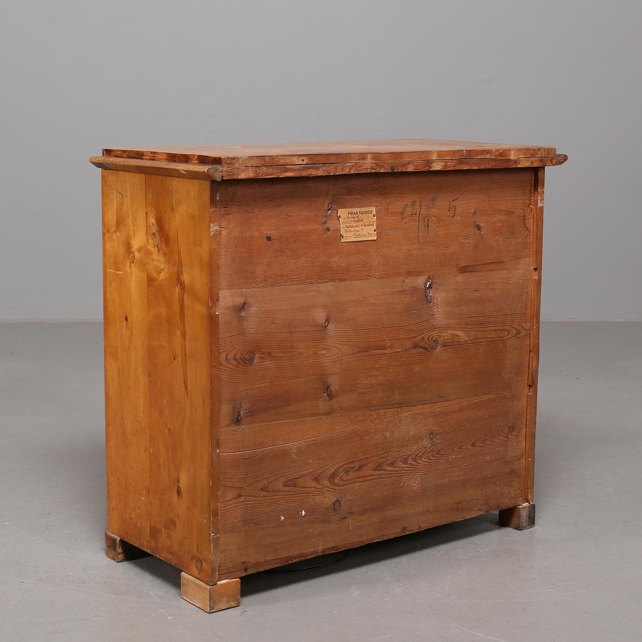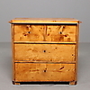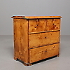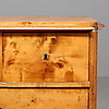 Byrå, björk, omkring 1800-talets mitt, fyra lådor, H 84 cm B 90 cm Dj 51 cm.