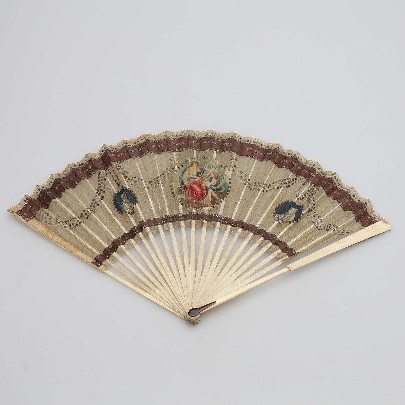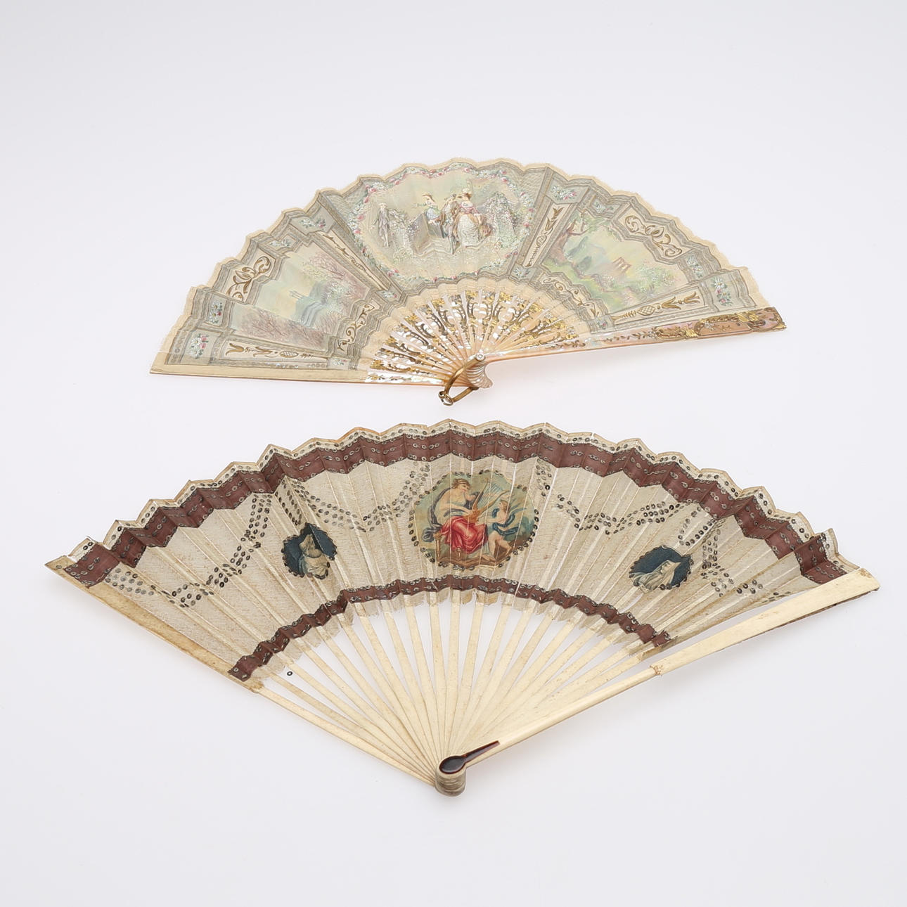 1209578. SOLFJÄDRAR, TVÅ STYCKEN, tryck och måleri på tyg.