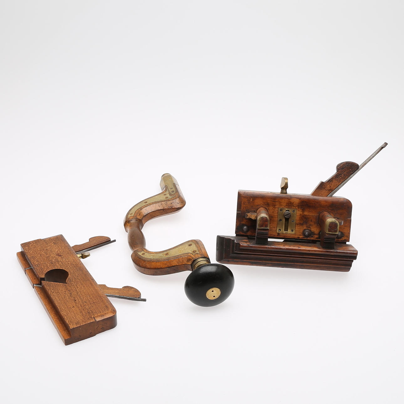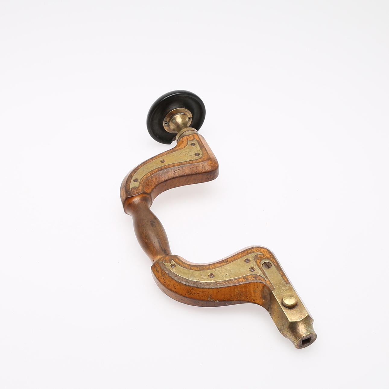 trä med detaljer av mässing och järn, 1800-talet, längd 23-24 cm.