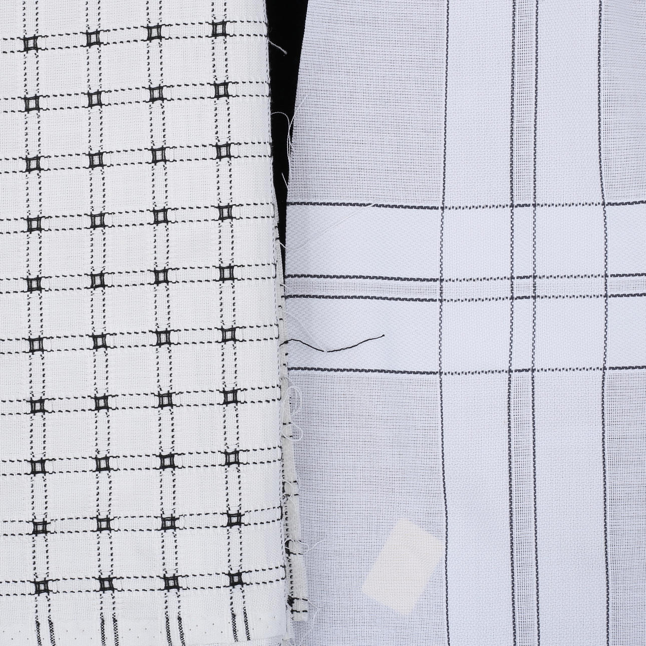 Tyg små svarta rutor på vit botten Kinnasand "Möja" 1488, 140 x 155 cm.