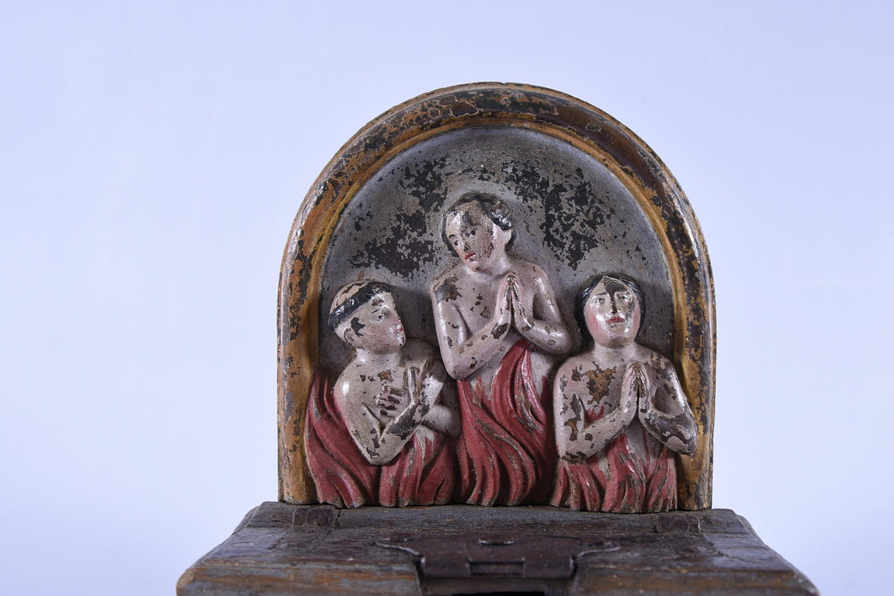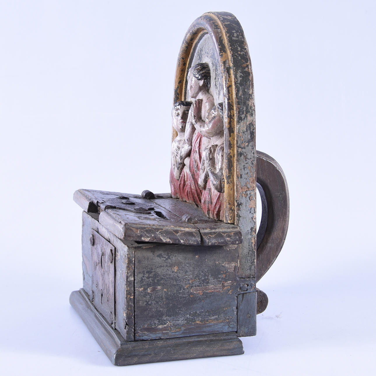 KOLLEKTBÖSSA, bemålat trä, 1600-tal.