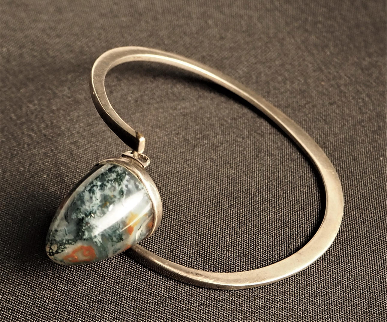 Silverarmband med toppig sten, Innermått, bredd 6 cm, höjd 5 cm. Stenens höjd ca 2,5 cm.