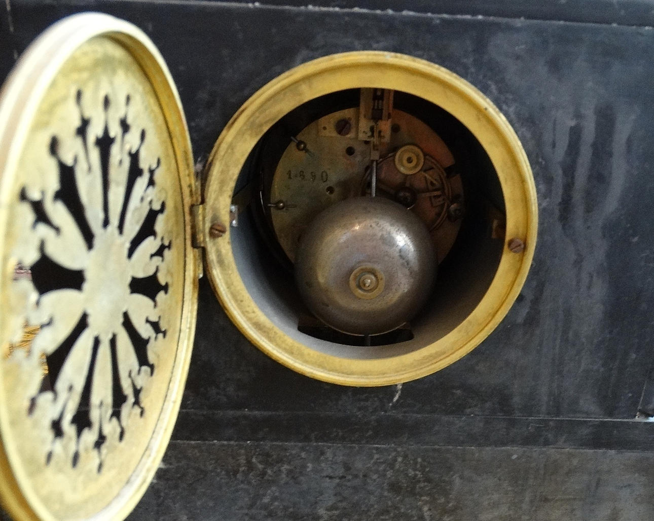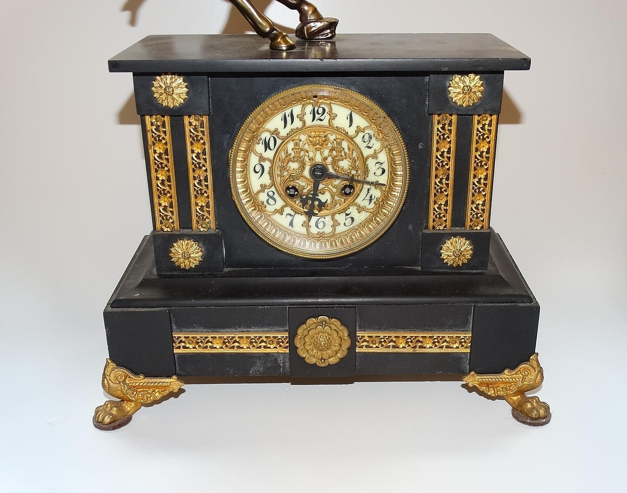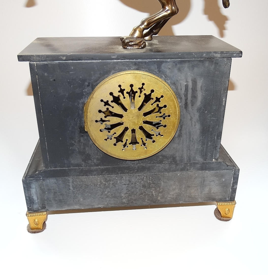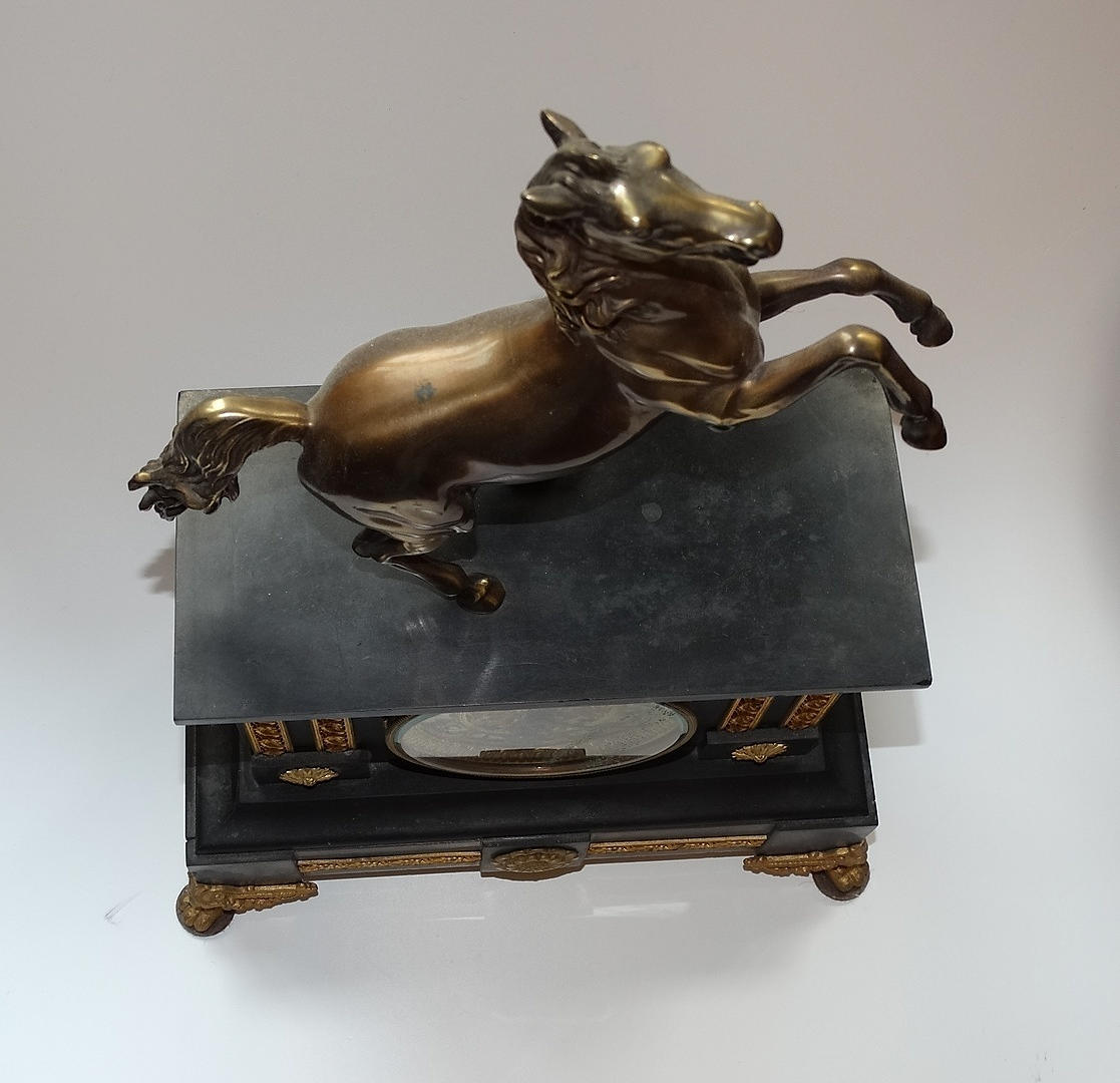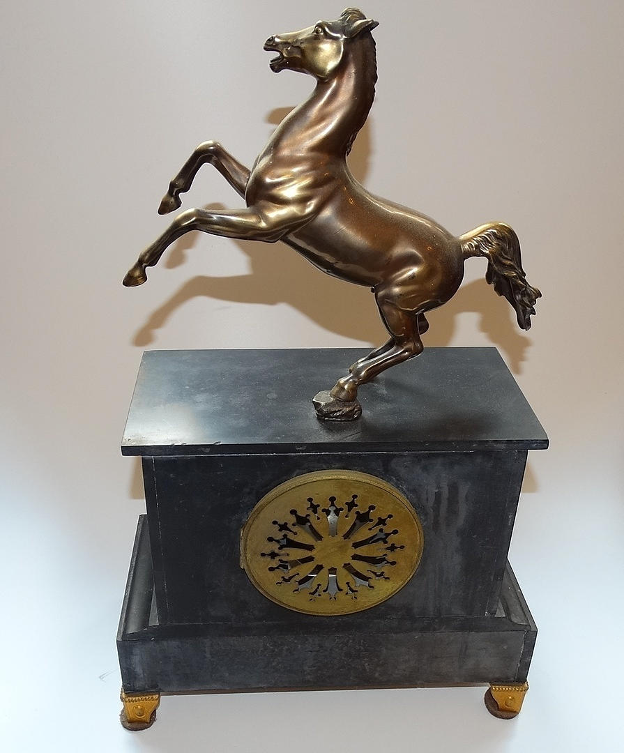 1222476. MARMOR OCH BRONS ELDSTAD KLOCKA MED HÄST DESIGN, 1800-tal.