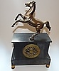 Eldstadsur i marmor med bronsdekor och hästmotiv, ca 30 x 47 x 12 cm, 1800-tal.