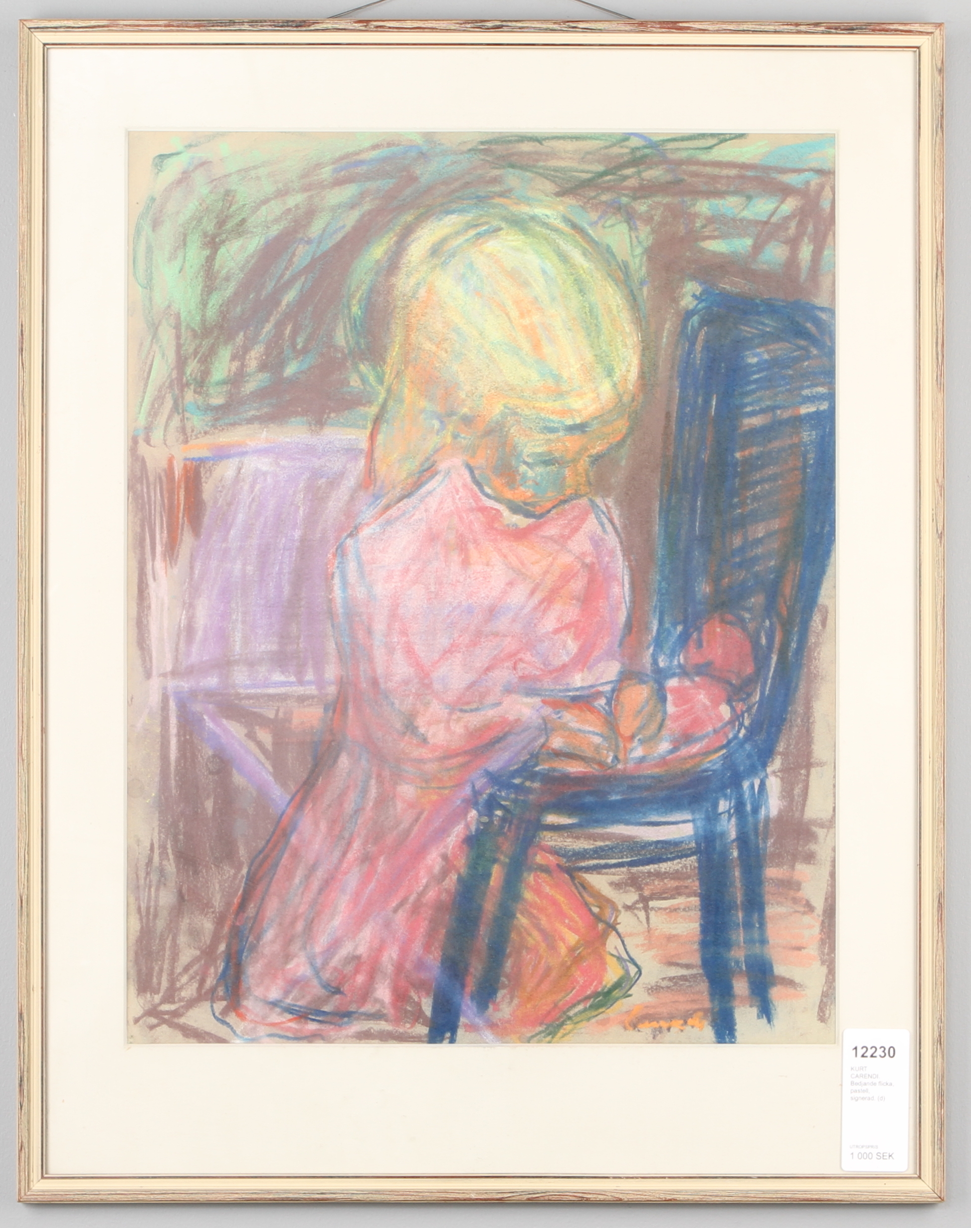 12230. KURT CARENDI. Bedjande flicka, pastell, signerad.