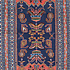 övervägande röd/blå, figurativ, 128 x 195 cm.