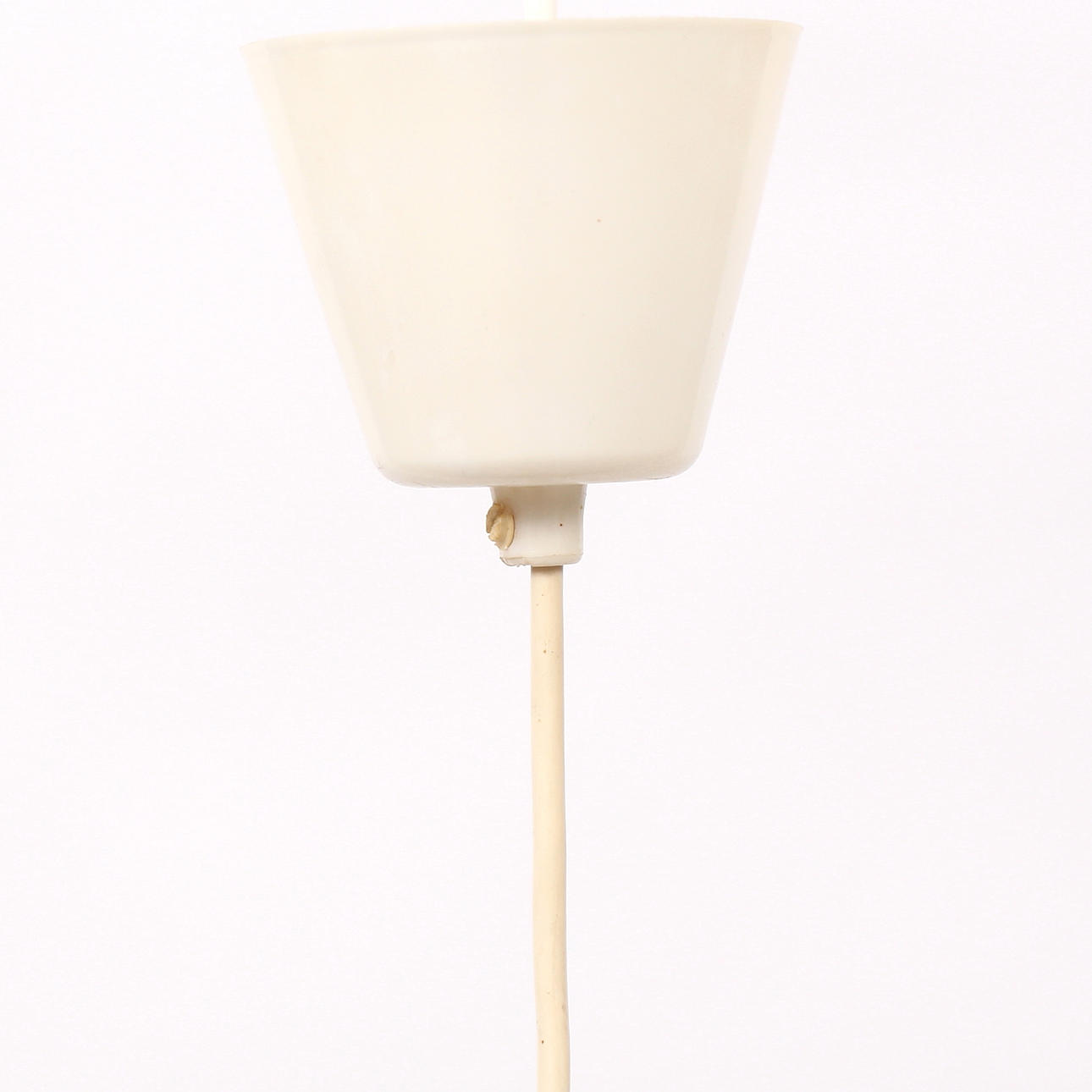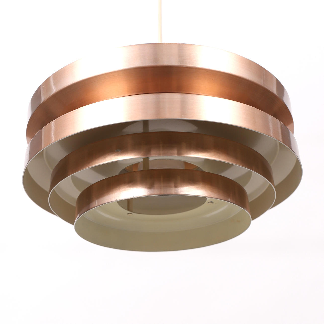 Taklampa, metallskärm uppbyggd av lameller, kopparfinish, invändigt vitlackerad, 1900-talets fjärde kvartal, dia. 30 cm H 18 cm.