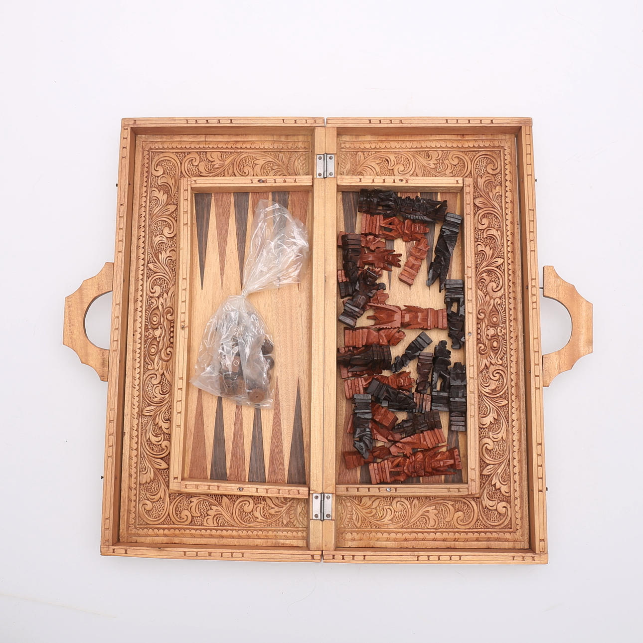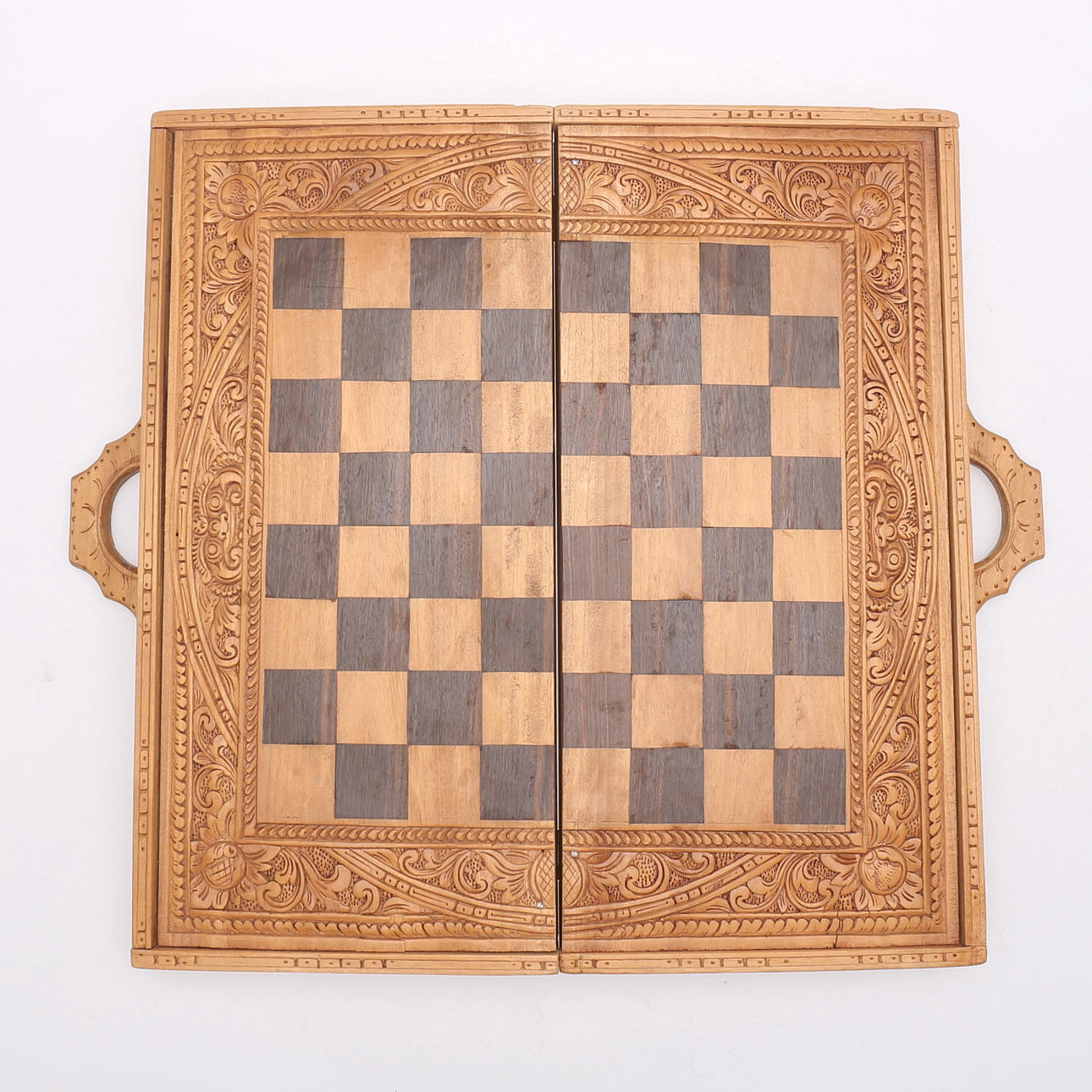 SCHACKSPEL/ BACKGAMMON, trä, 1900-tal.