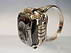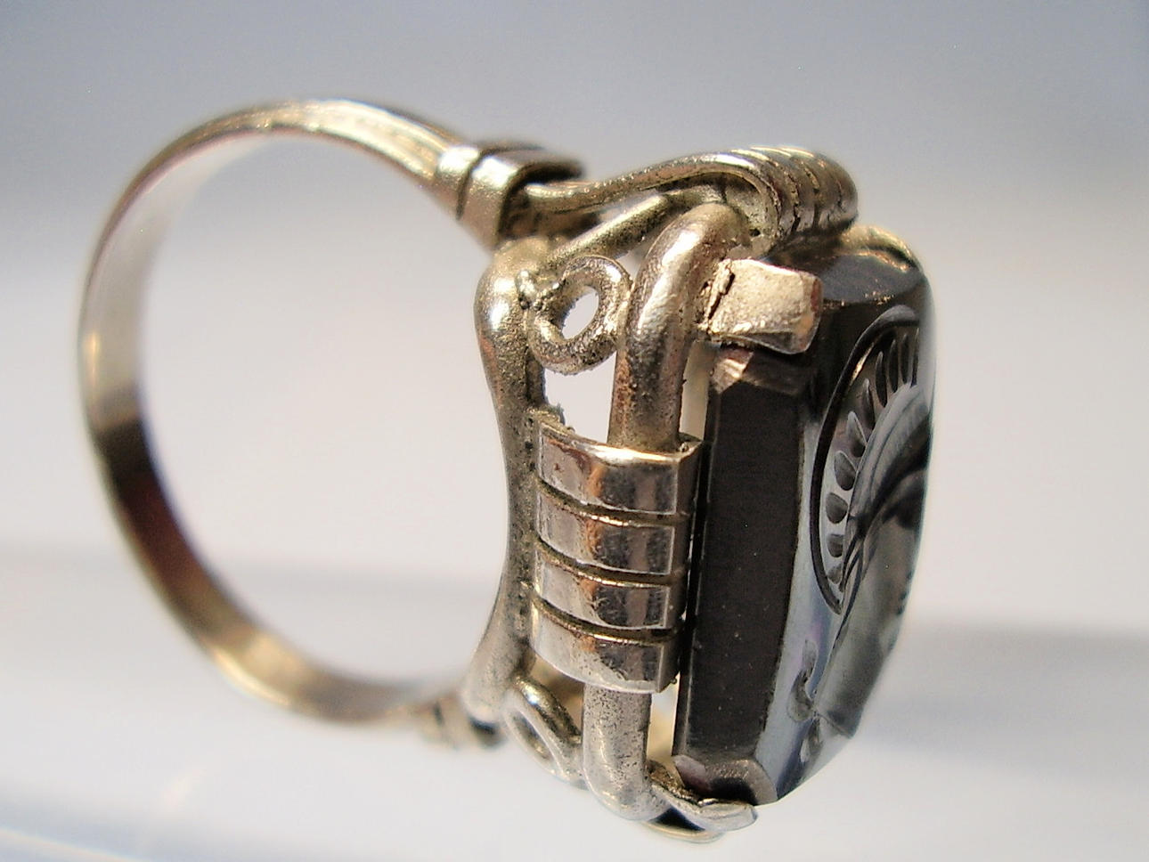 1237382. ANTIK HEMATIT RING GRAVERAD KRIGARE HUVUD.