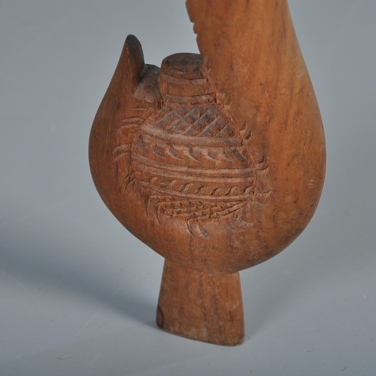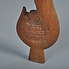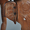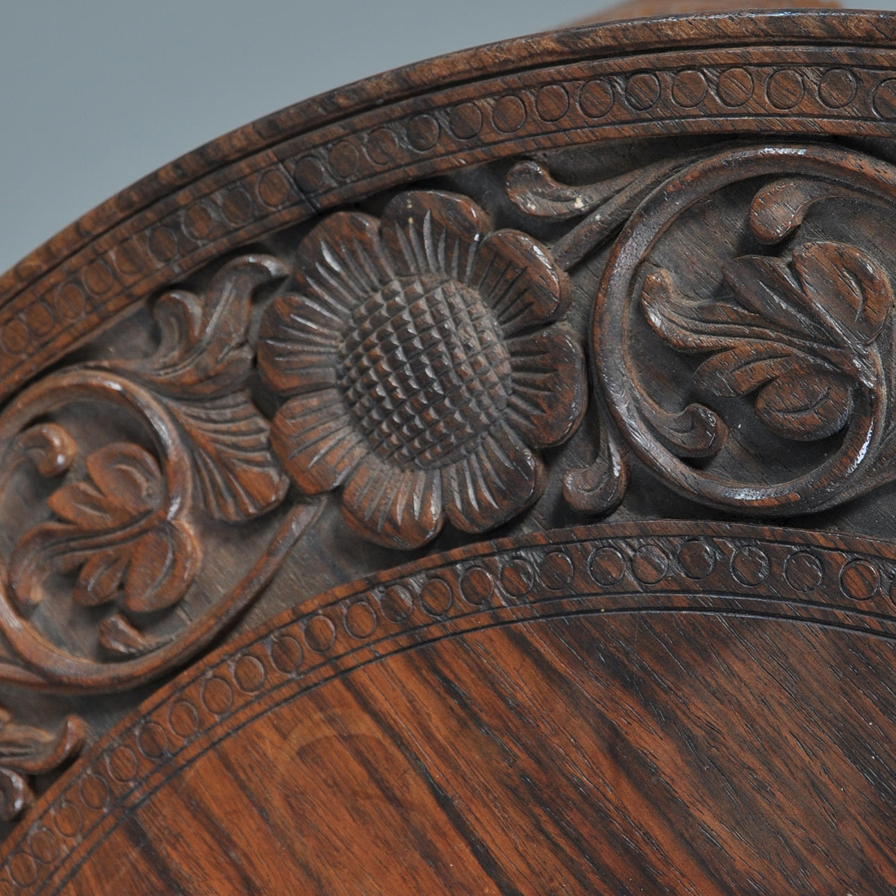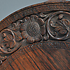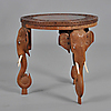 Teak, rikt skuren dekor. Höjd 46, diameter 45 cm.