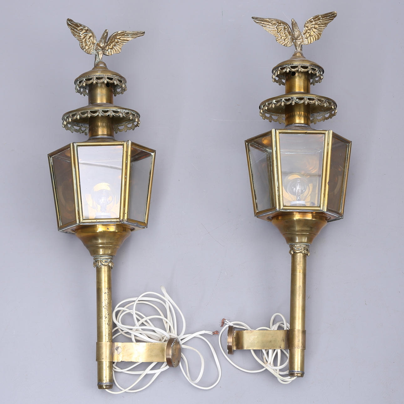 VÄGGLYKTOR, 1 par, mässing, 1800/1900-tal.