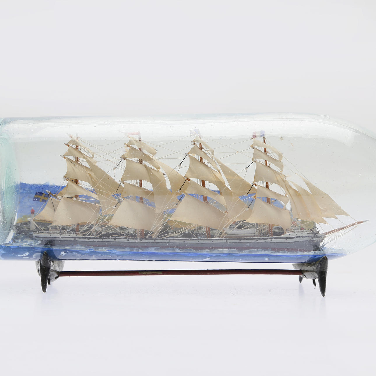 1241330. FLASKSKEPP med ställ, glas, 1900-tal.