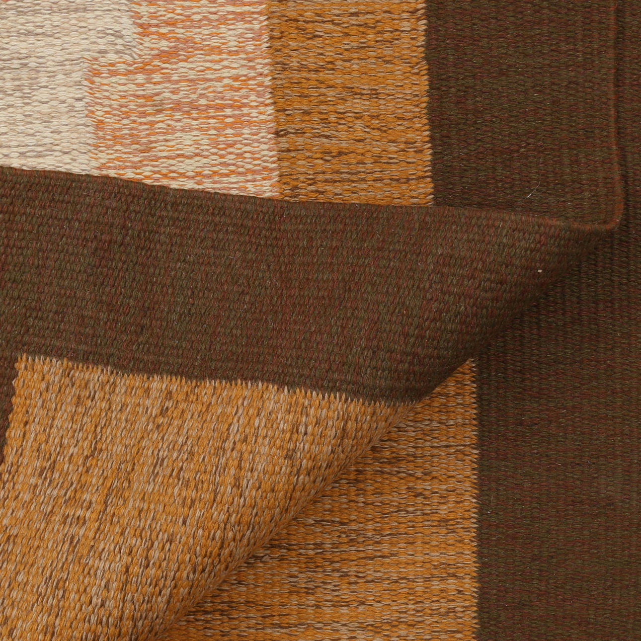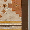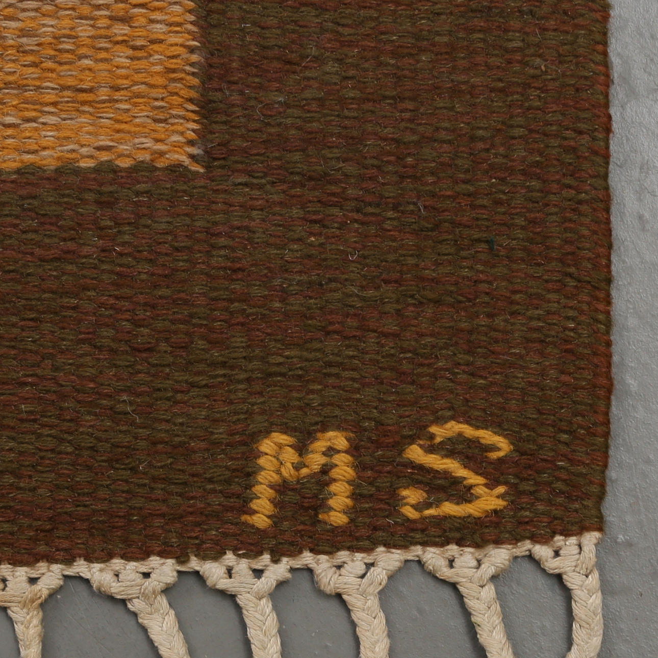 Slätvävd ullmatta i jordtoner, signerad MS, mått ca 198x290 cm.
