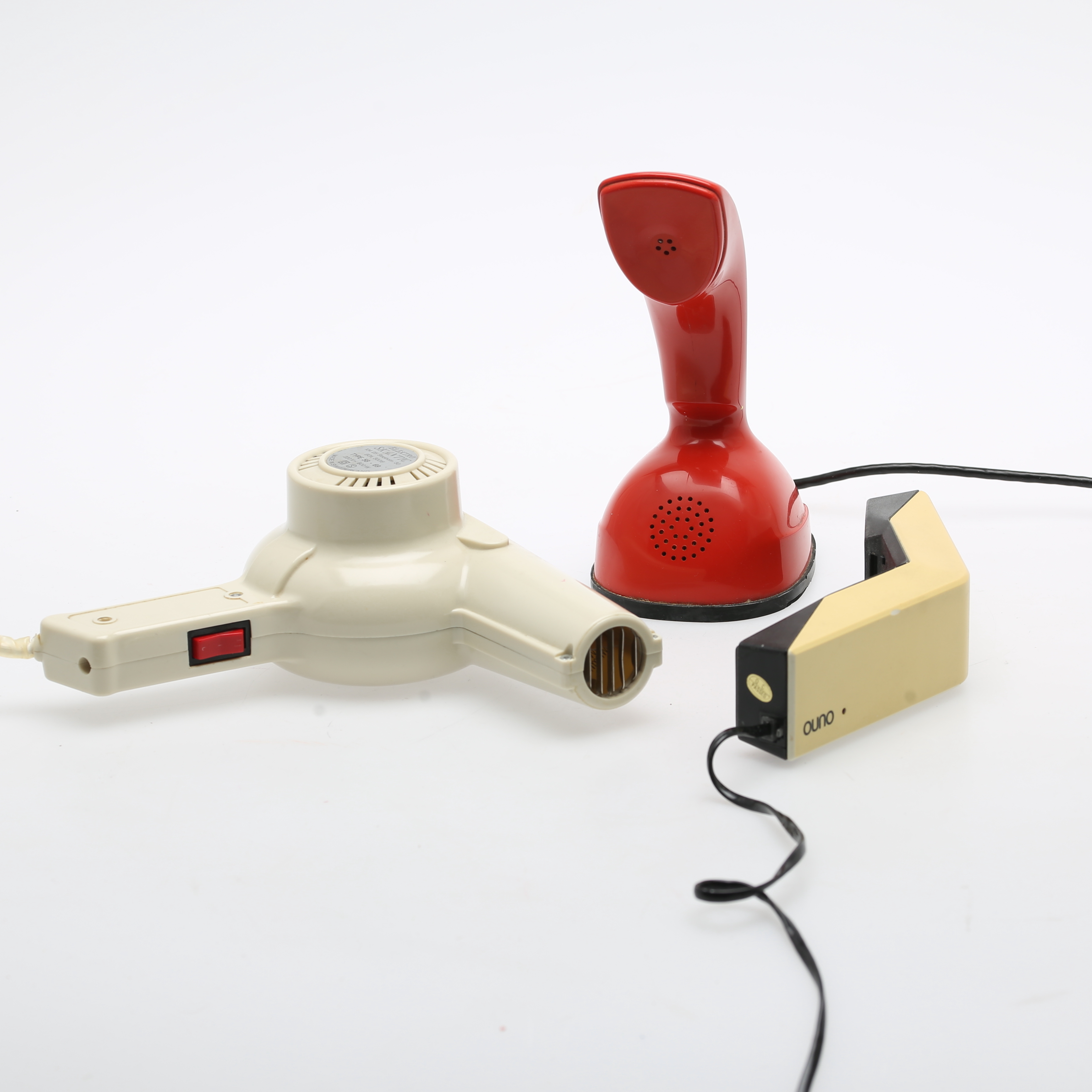 1243622. TELEFONER, 2 st, samt HÅRFÖN, 1900-tal.