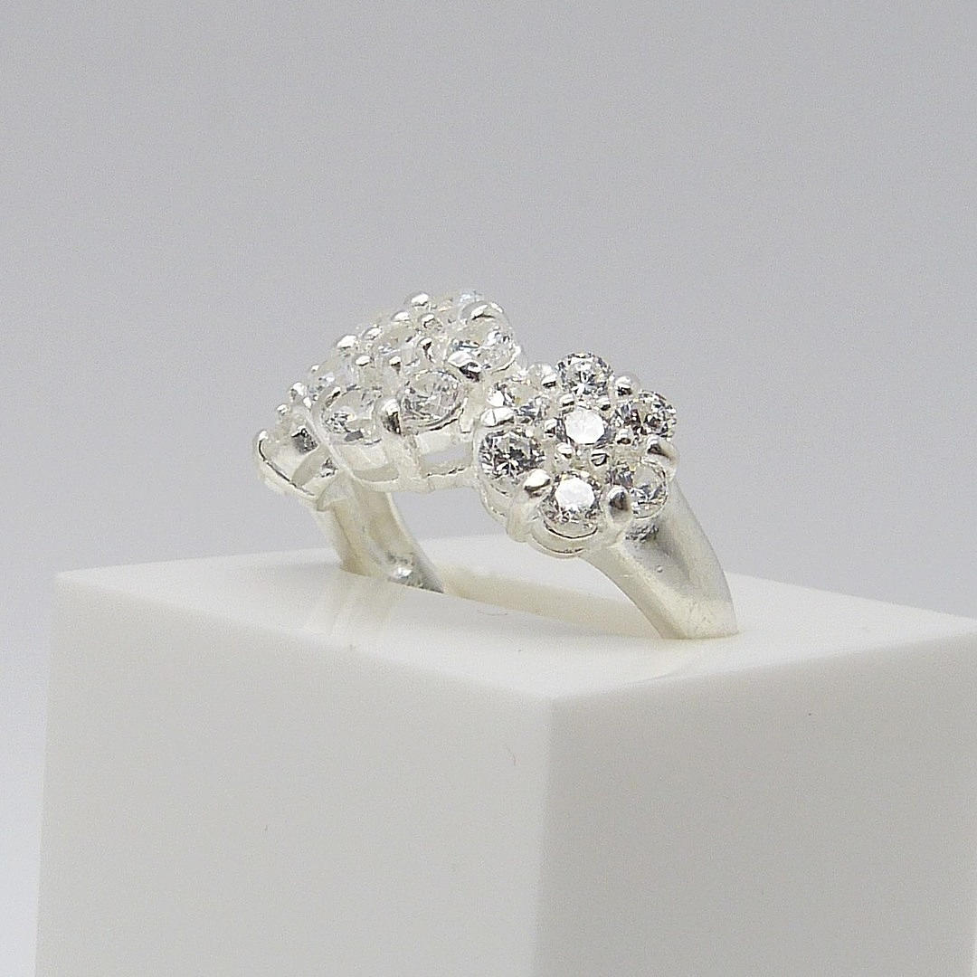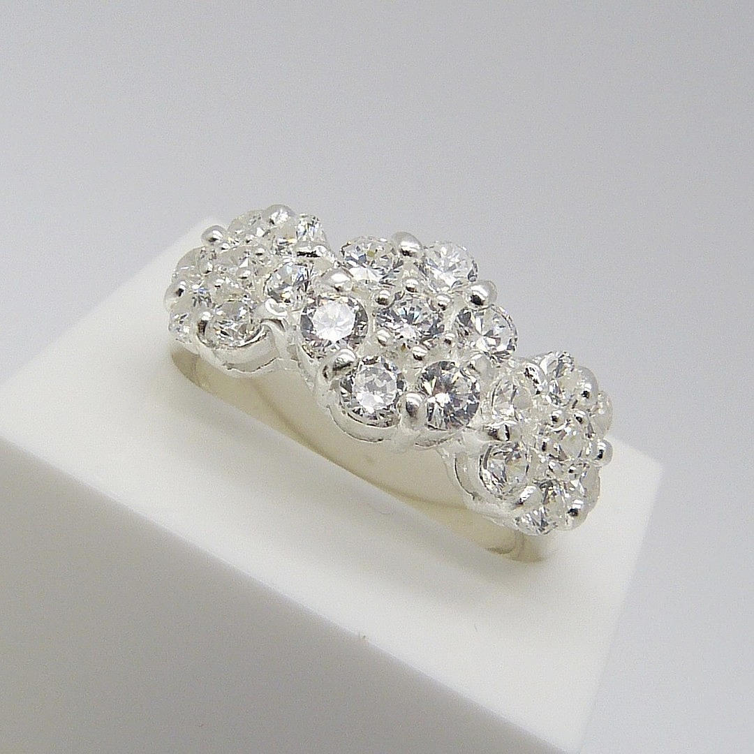 Jag totalt, denna ring är inställd med 21 x cubic zirconia stenar. Stenarna i mittklustret är något större än i de andra två.