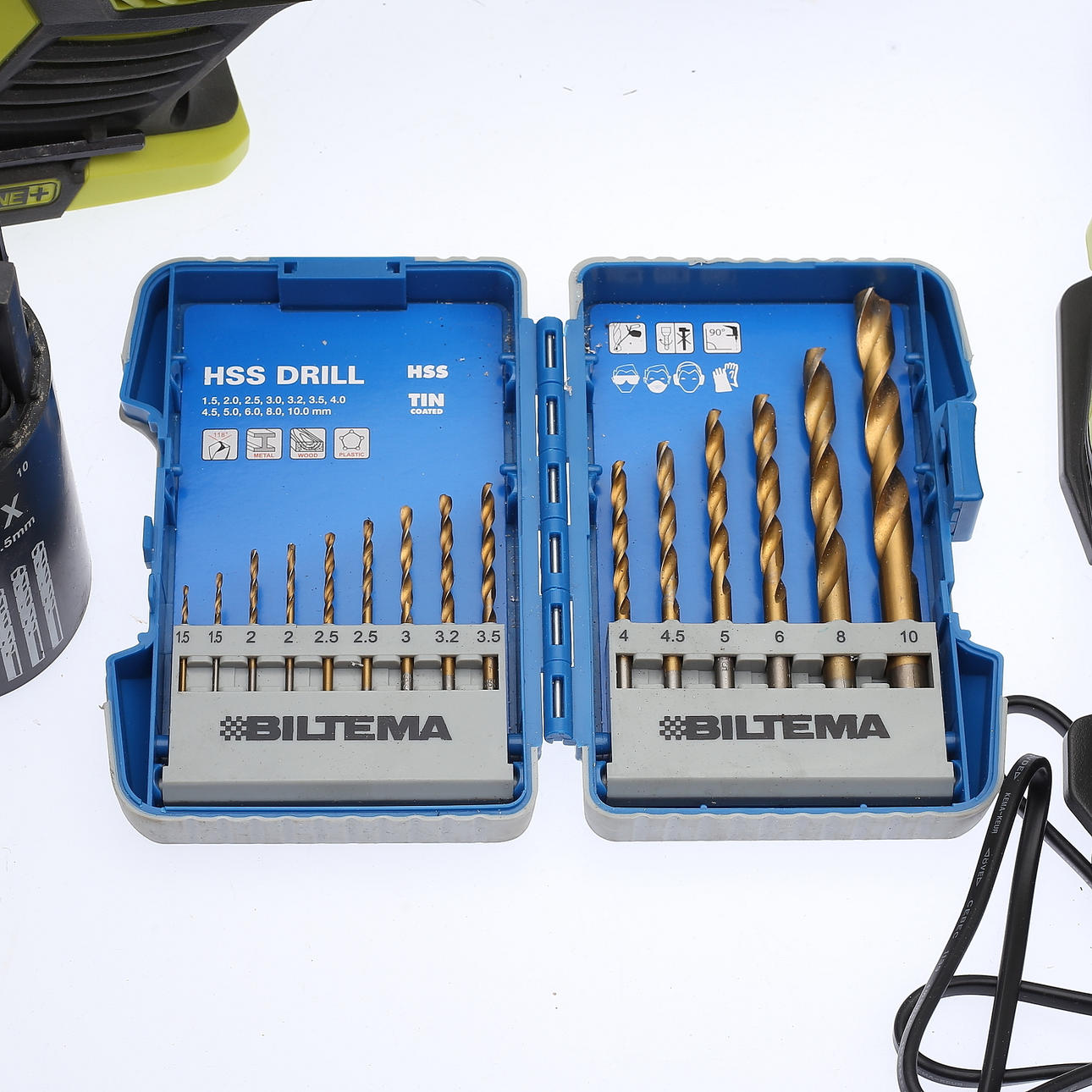 Såg, RRS1801. Borrmaskin, Drill driver, RCD1802. Borrmaskin, Impact driver, RID1801 Diverse lösa borr medföljer.