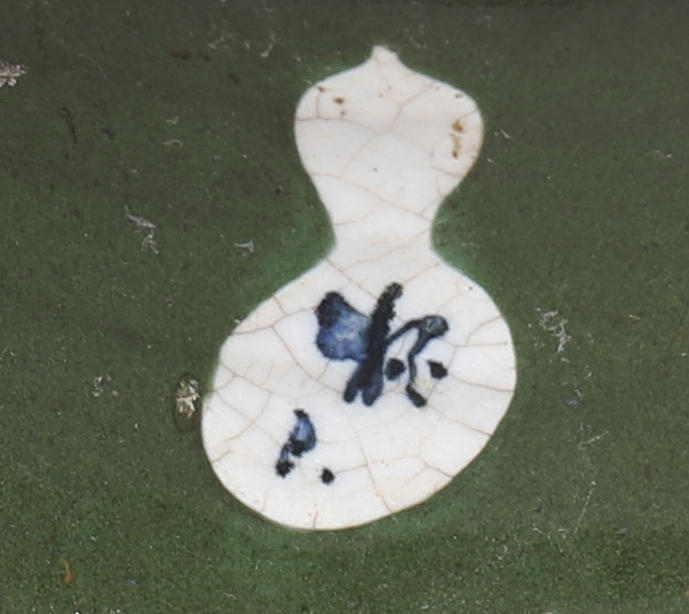 Större avslag på ett blomblad. Krackelerad glasyr. Ålders- och bruksslitage.