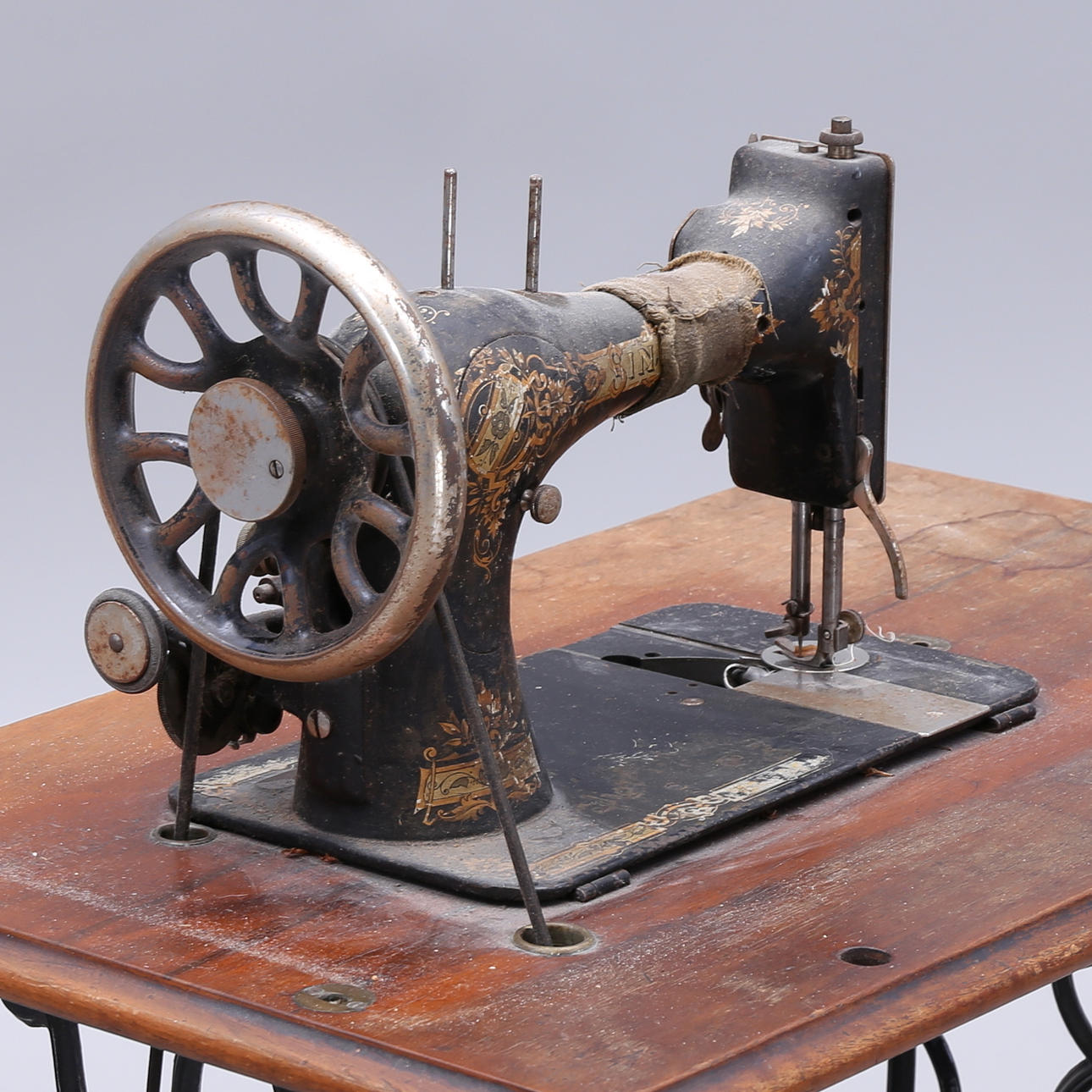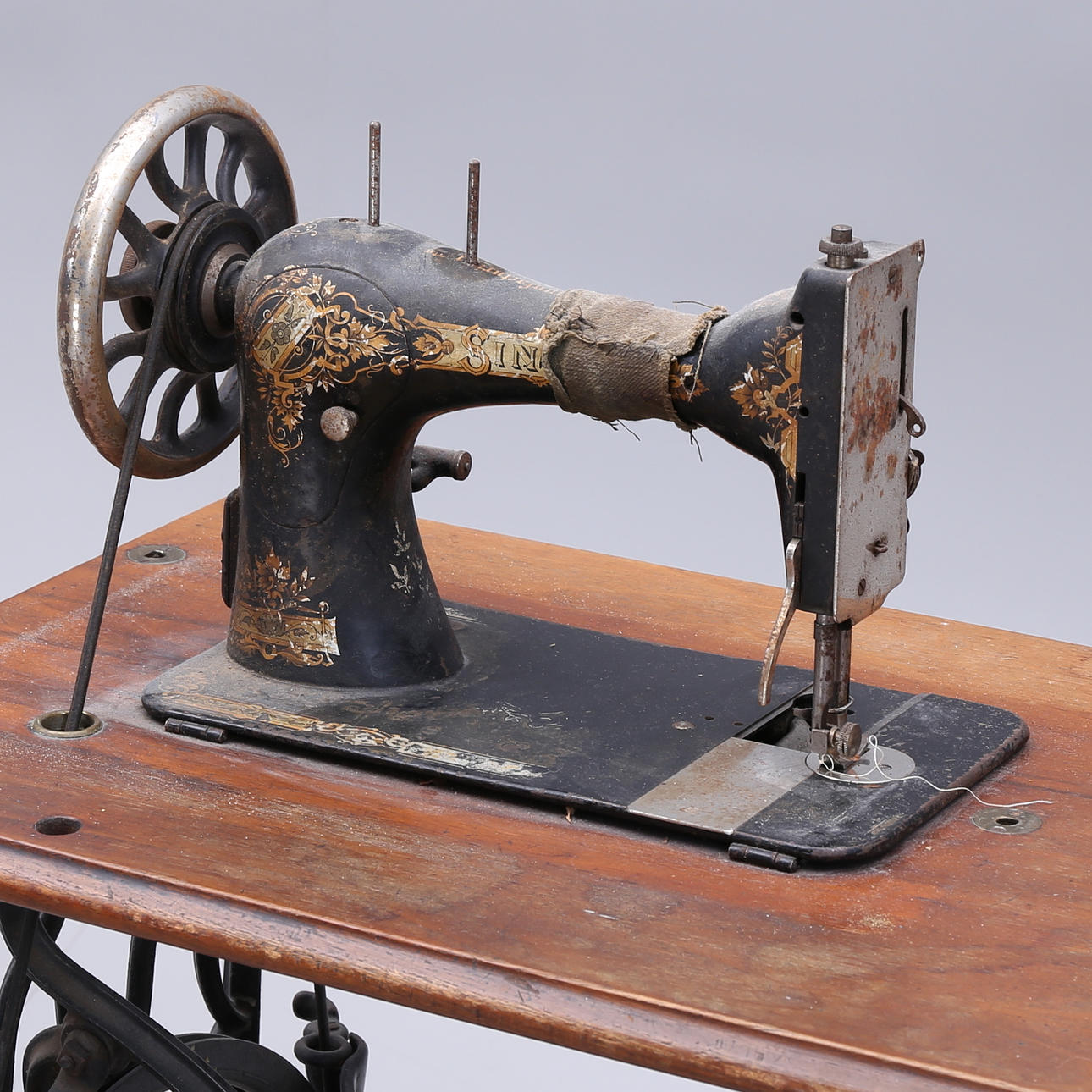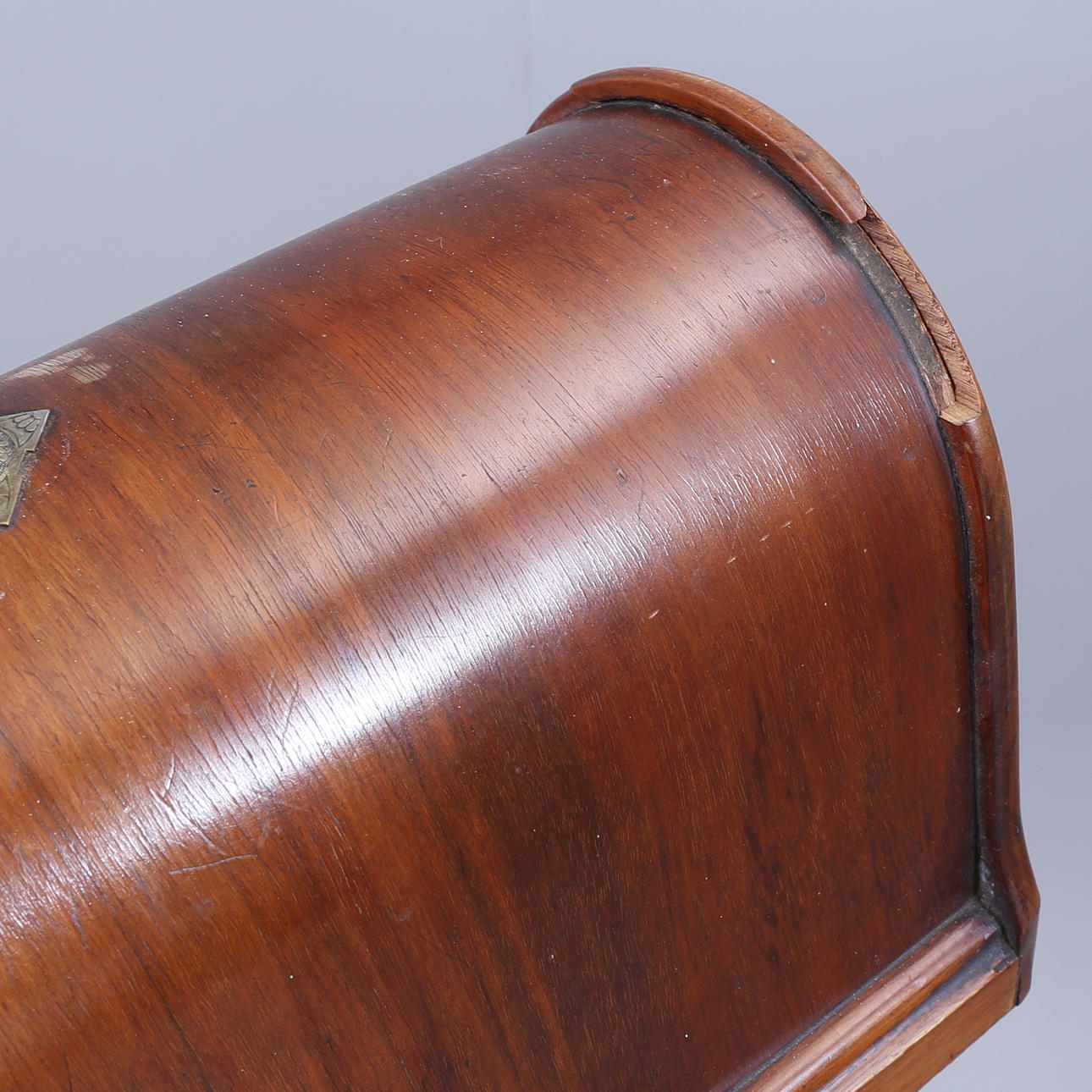 Slitage, rost, lock till spole saknas, huva med skada/lagning.