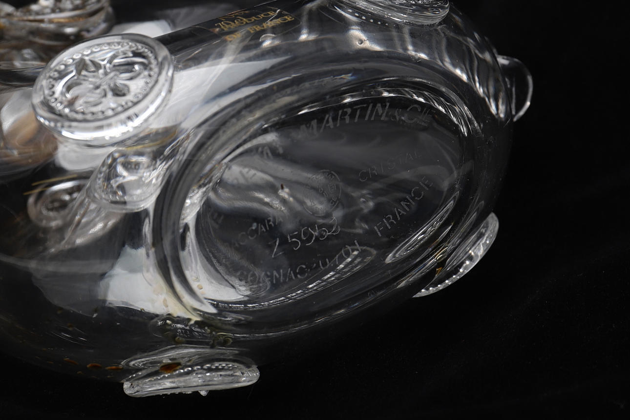 En Baccarat kristallkaraff som ursprungligen fylldes med Remy Martin Louis XIII Grand Champagne Cognac.