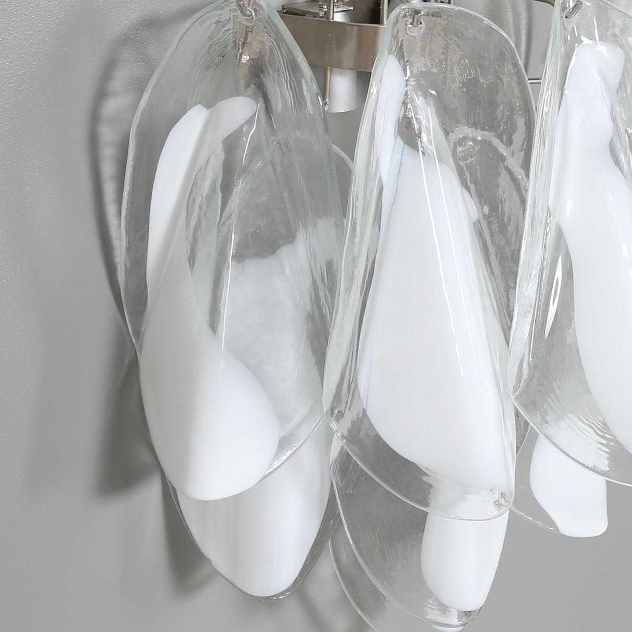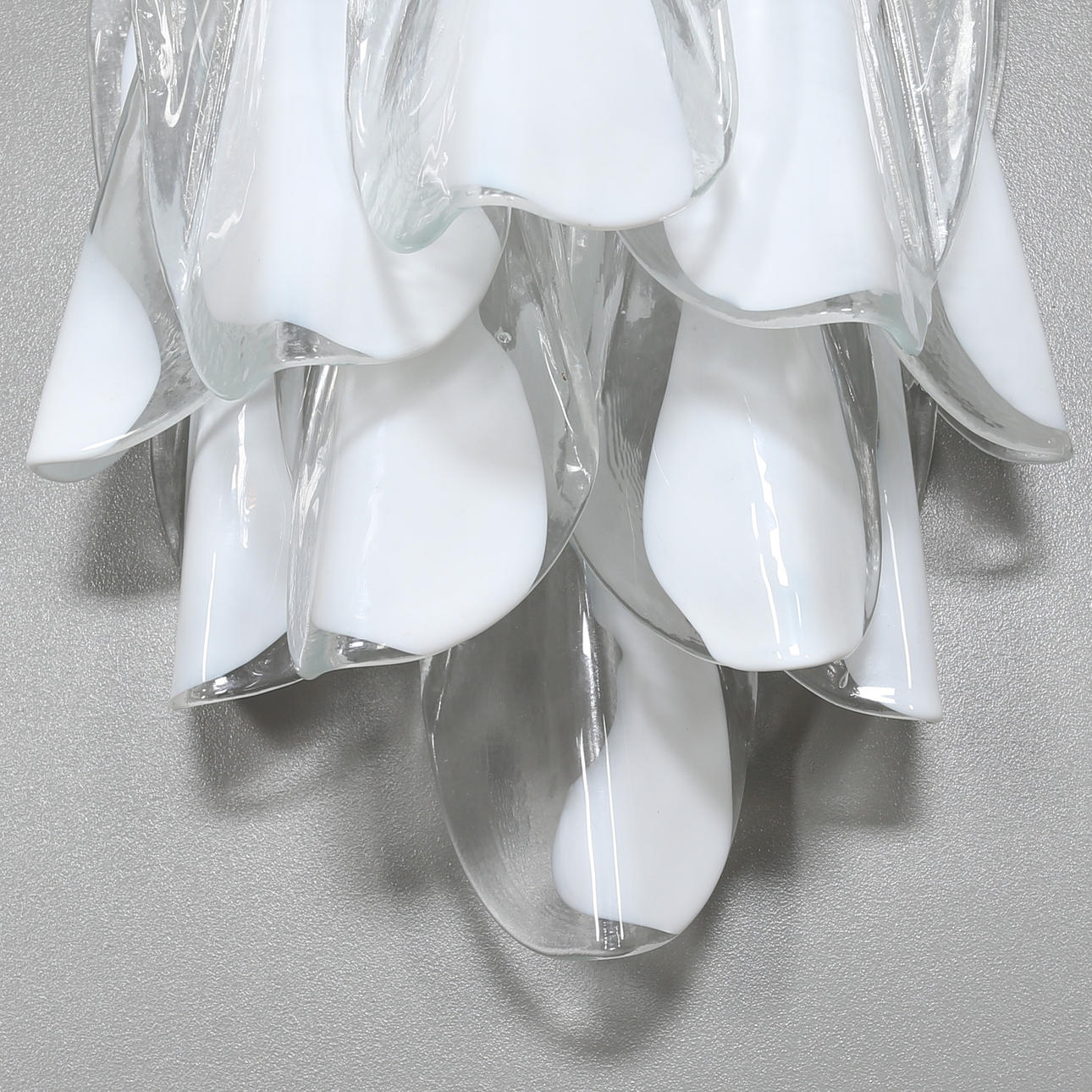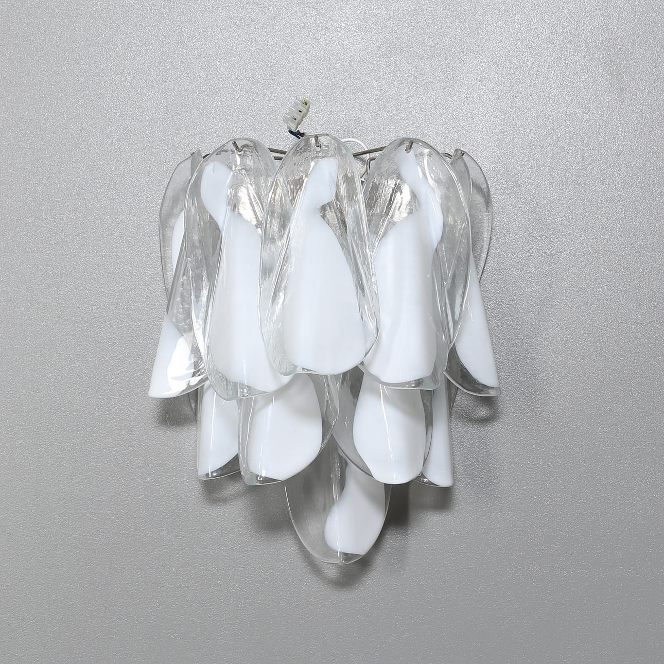 Paret vägglampor, ställning i stål behängd med vardera 10 glasstycken i delvis opakt glas. 2 + 2 ljuspunkter.