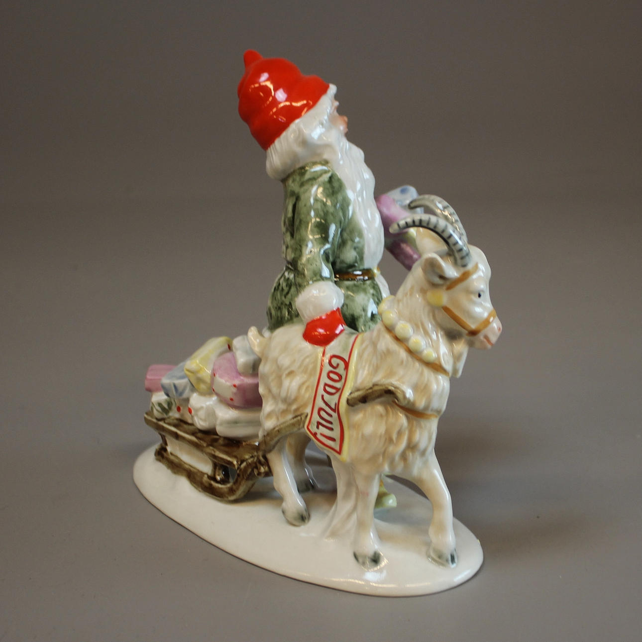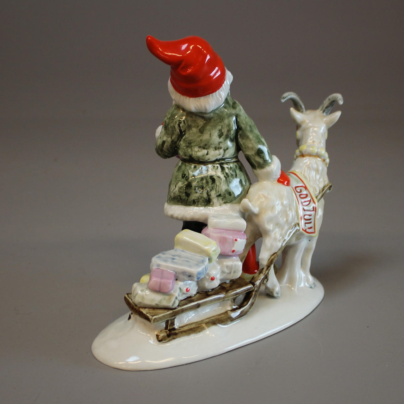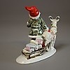 1252451. FIGURIN, Tomte med bock och släde efter Jenny Nyström.