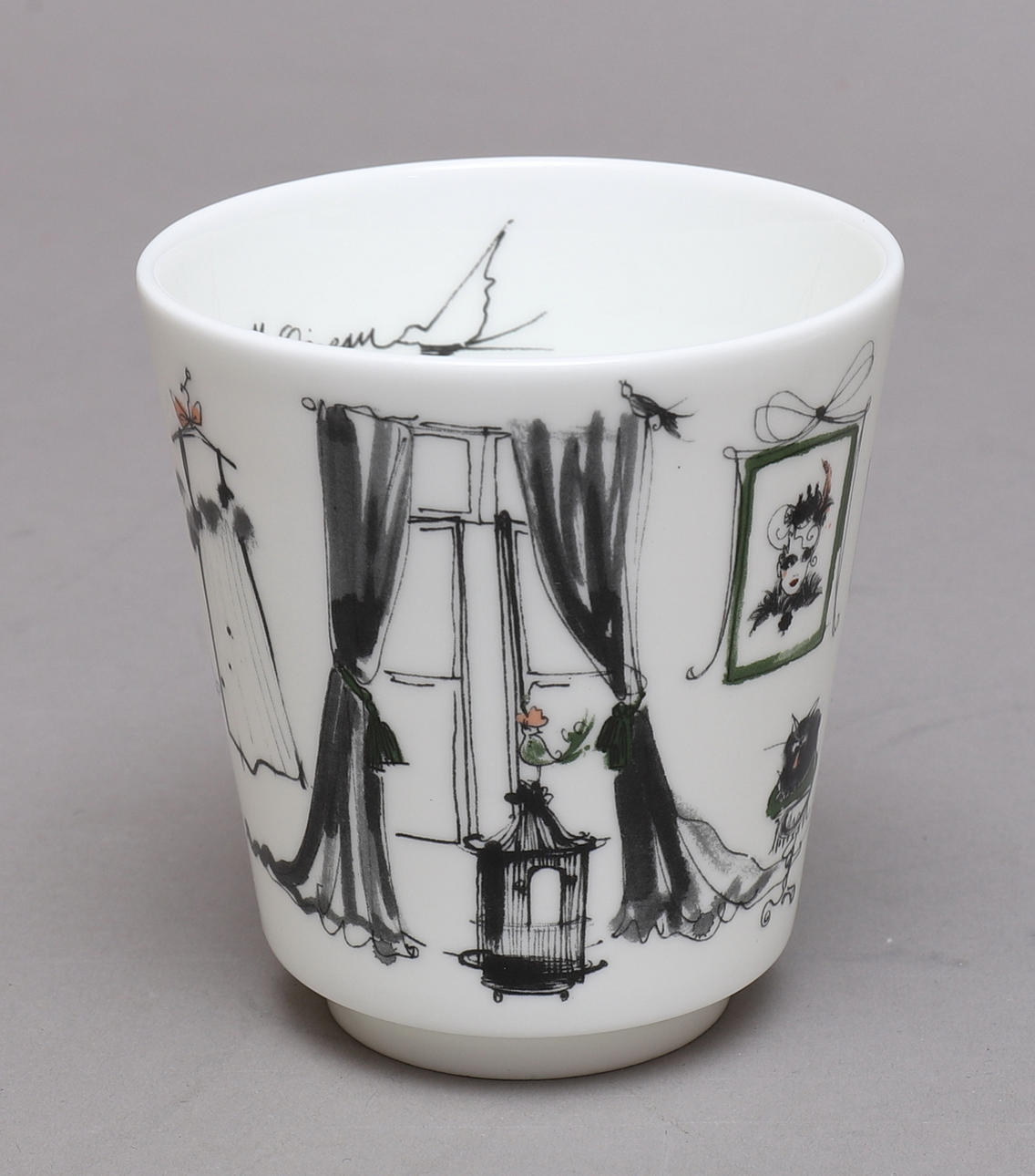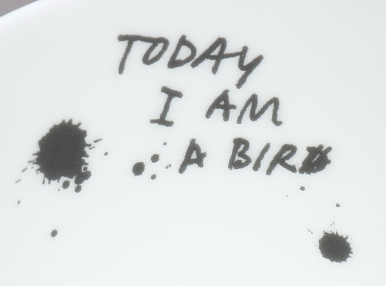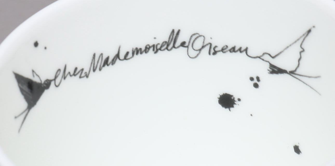 2 kaffemuggar, "Chez Mademoiselle Oiseau" & "Today I am a bird", höjd ca 10 cm 1 espressomugg, "Bird Girl", höjd ca 6.