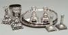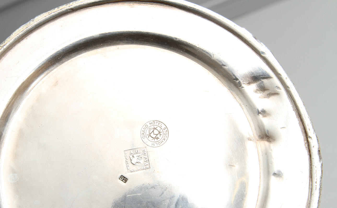 Bla. Dufva, bestående av; Vinkyl, ljusstakar 3 par, brickor 2 st, brickornas diameter 43 resp 45, vinkylens höjd 15 cm.
