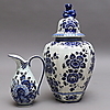 Lockurna, ca 42 cm hög med lock, numrerad 455. Kanna, Delfts blauw, ca 21 cm hög, numrerad 95/C.