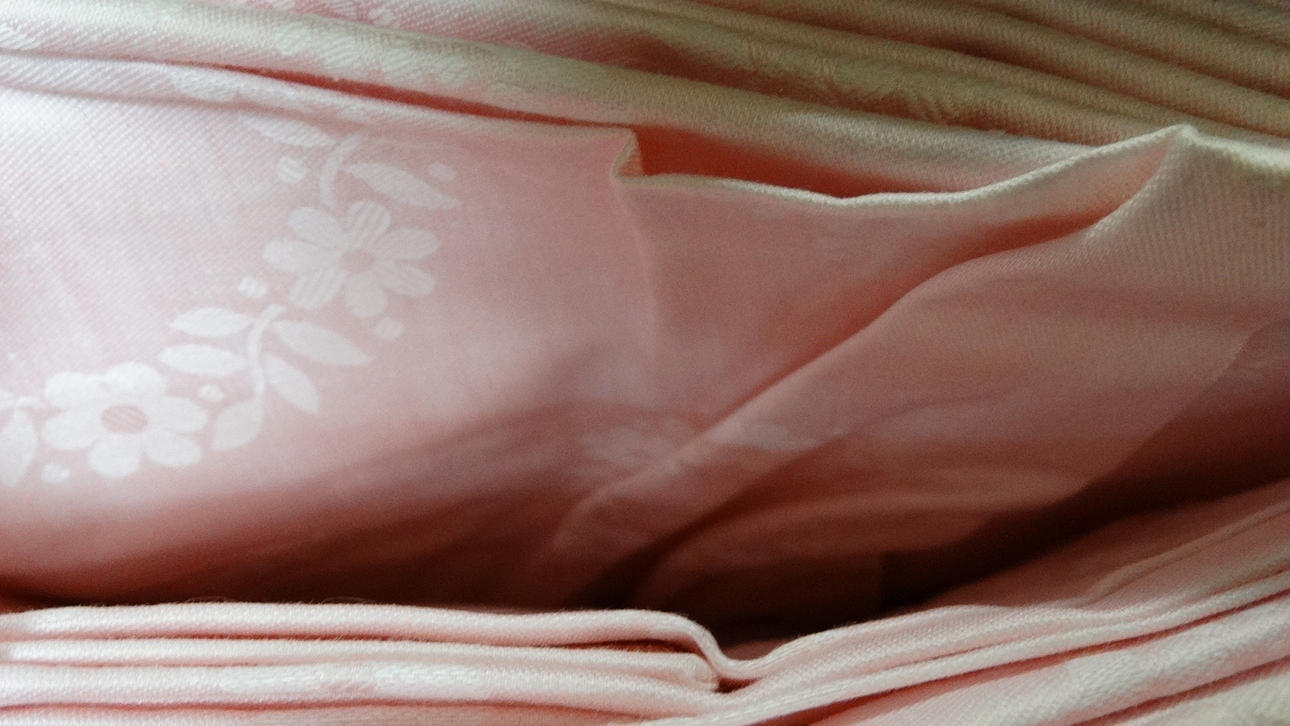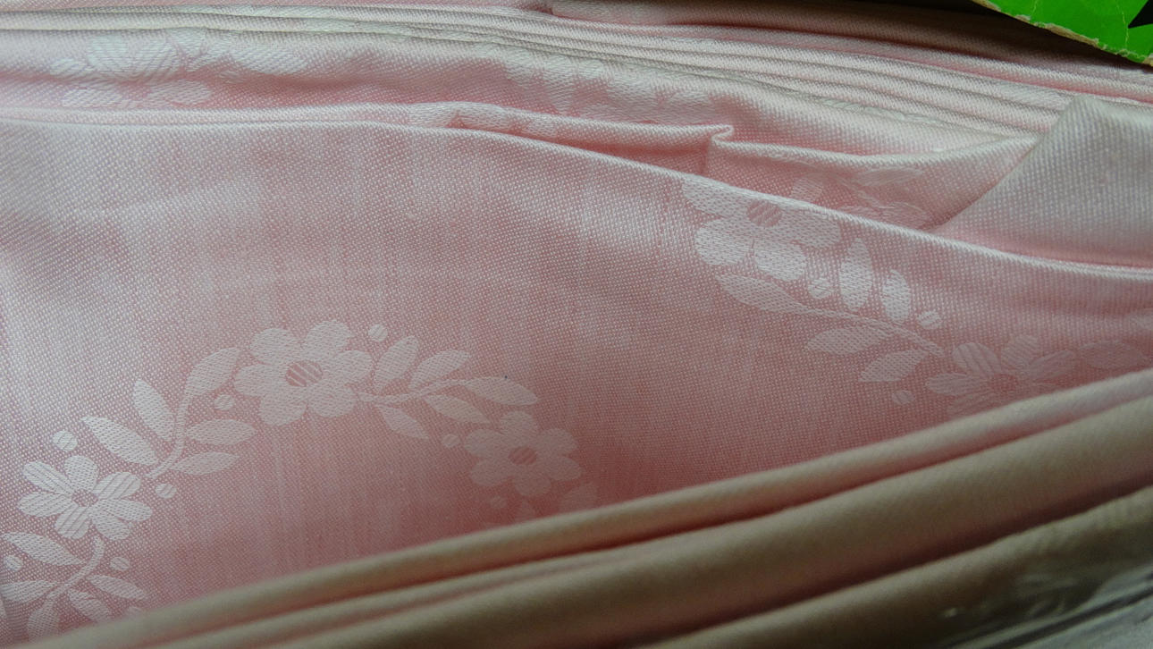 Damast, rosa, två omslag, vardera 200 x 155 cm och 80 x 80 cm.