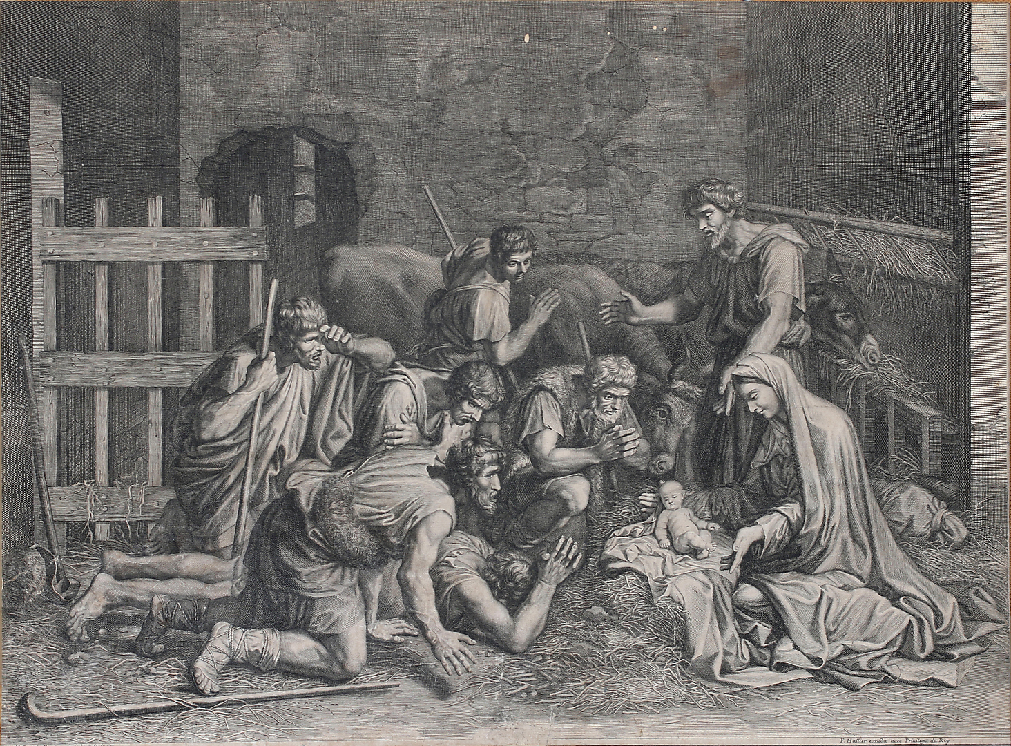 1262341. NICOLAS POUSSIN. EFTER. Jesusbarnet i krubban, kopparstick.